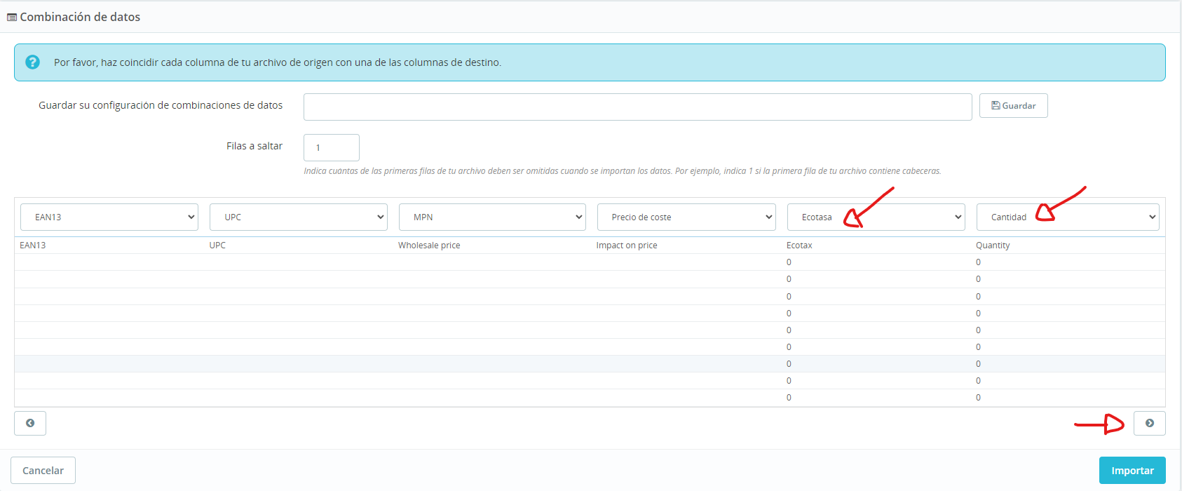 Una vez tengamos las columnas como las imagenes de arriba, damos clic en importar, esperamos a que termine, y con eso ya esta todo listo.