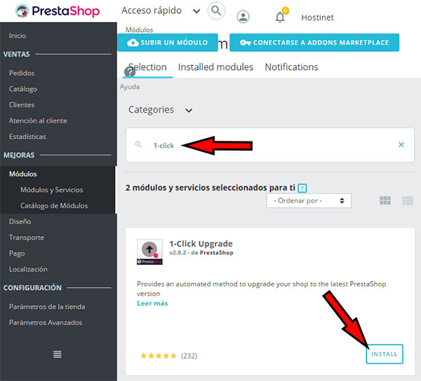 Instalar 1-Click Upgrade en PrestaShop 1.7 es tan sencillo como acceder al Backoffice de PrestaShop.