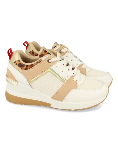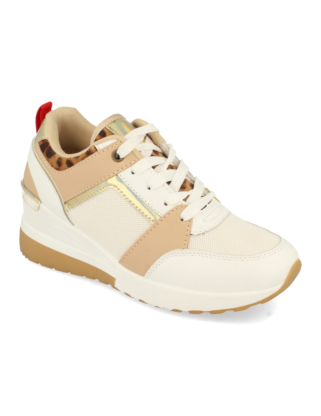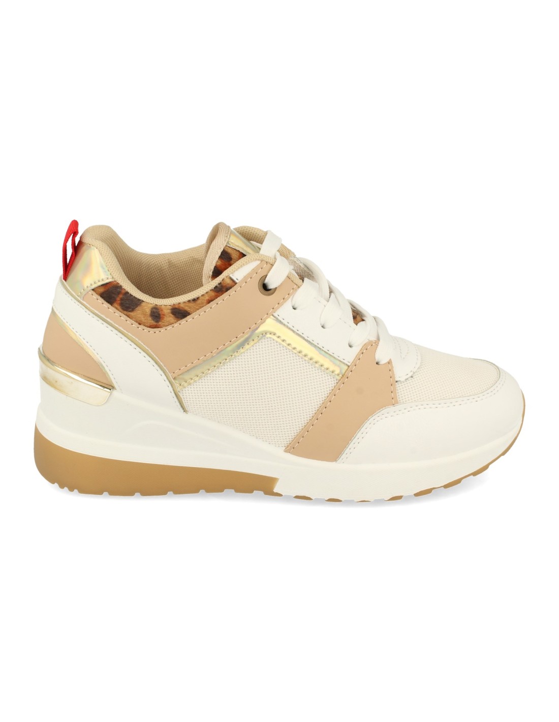 Zapatilla de Cuña para Mujer, Comodas, con Detalle Metalico en el Talón, Estampado Multicolor, y Cierre de Cordones, Primavera Verano 2021