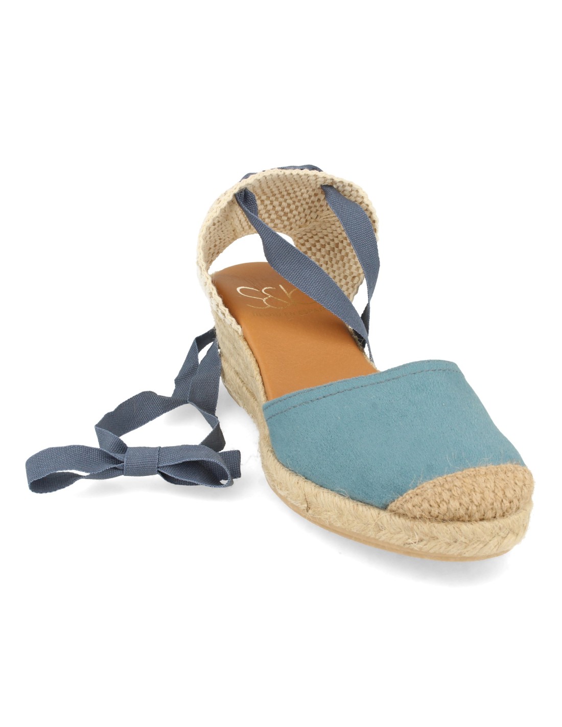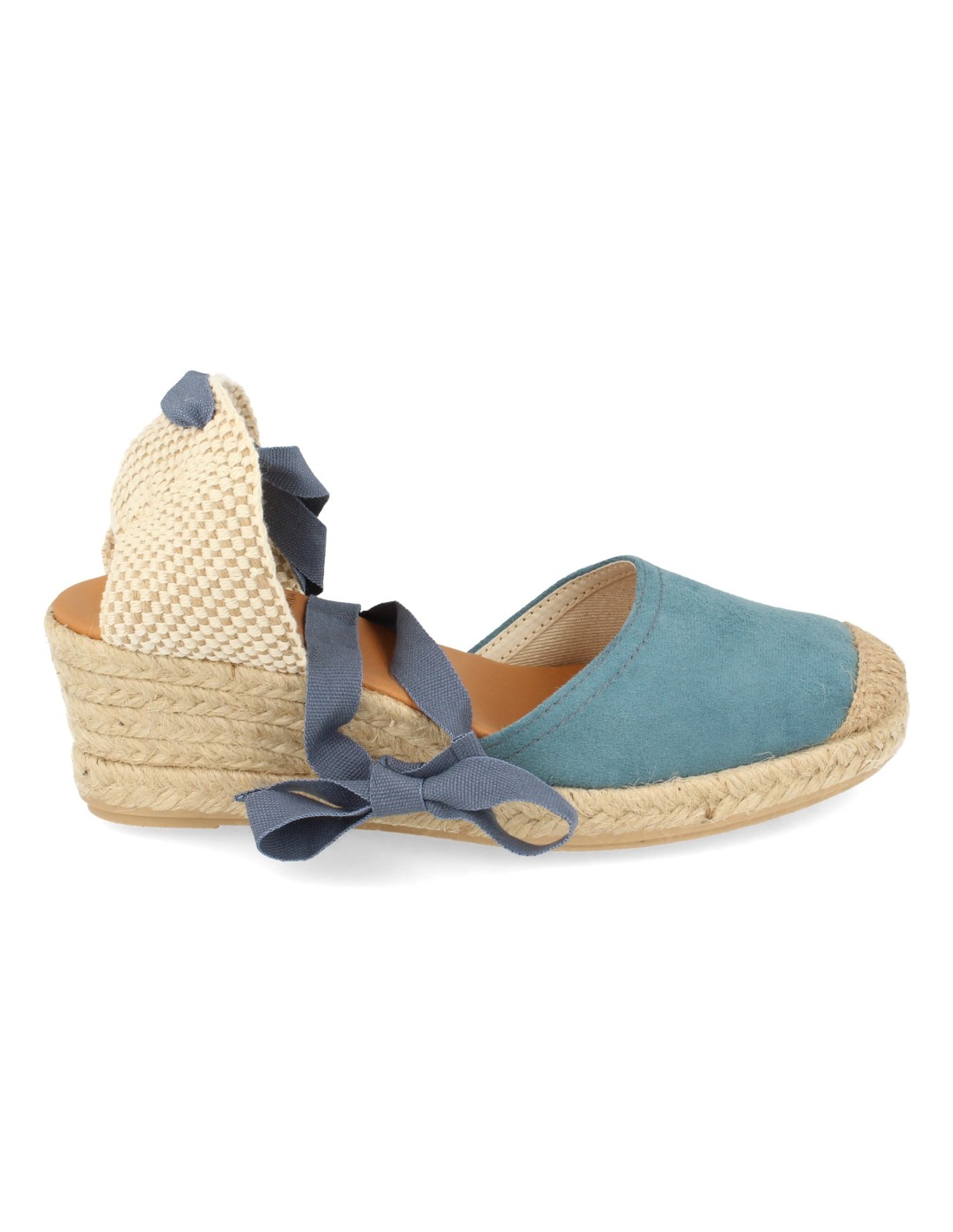 Alpargatas de Cuña para Mujer, Sandalia  Cerrada estilo Valenciana, Hecho en España, Yute 4 Cuerdas, Tiras al Tobillo, Primavera Verano 2021