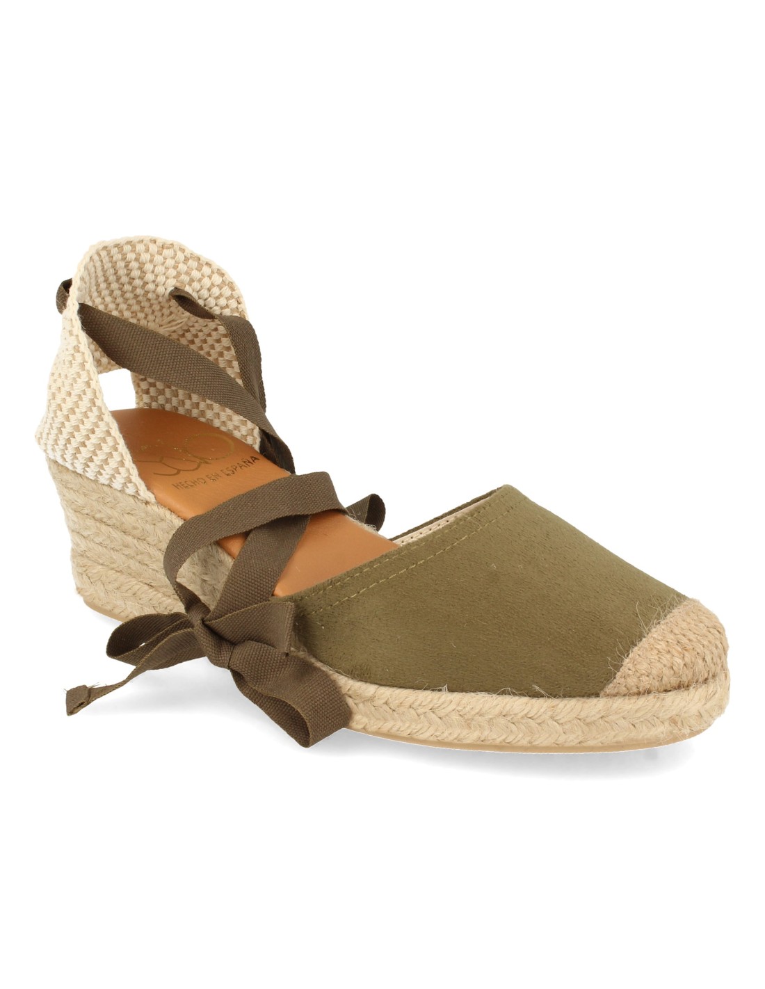 Alpargatas de Cuña para Mujer, Sandalia Cerrada estilo Valenciana, Hecho en España, Yute 4 Cuerdas, Tiras al Tobillo, Primavera Verano 2021