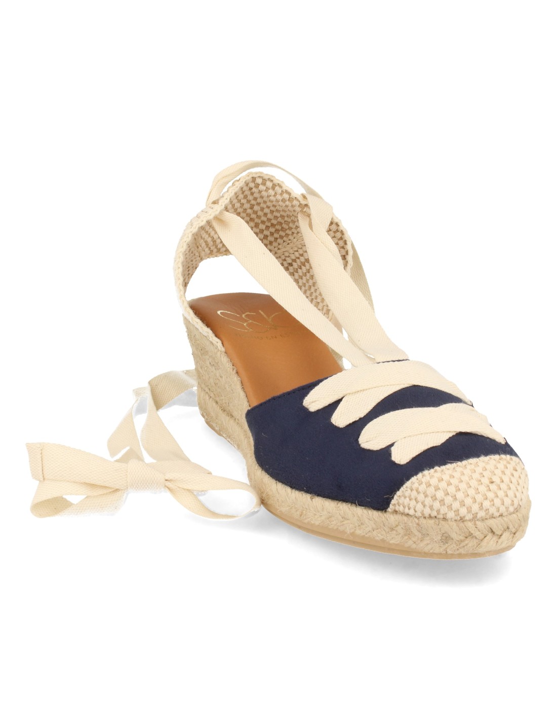 Alpargatas de Cuña para Mujer, Sandalia Cerrada estilo Valenciana, Hecho en España, Yute 4 Cuerdas, Tiras al Tobillo, Cruzadas en Pala, Primavera Verano 2021