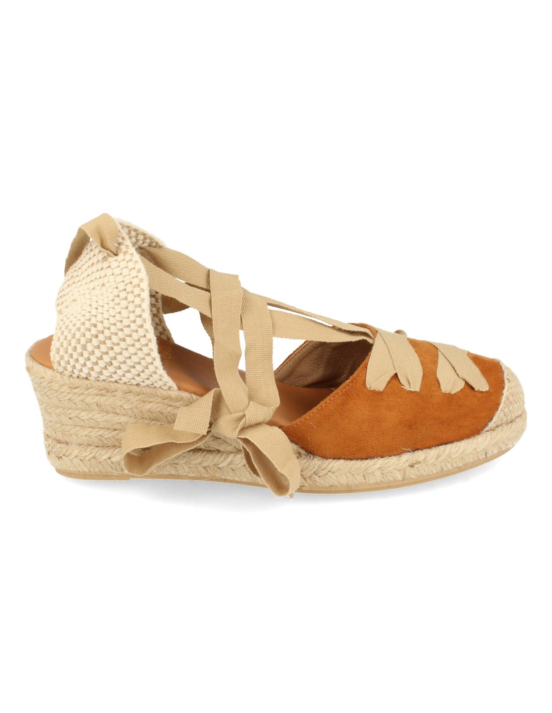 Alpargatas de Cuña para Mujer, Sandalia Cerrada estilo Valenciana, Hecho en España, Yute 4 Cuerdas, Tiras al Tobillo, Cruzadas en Pala, Primavera Verano 2021
