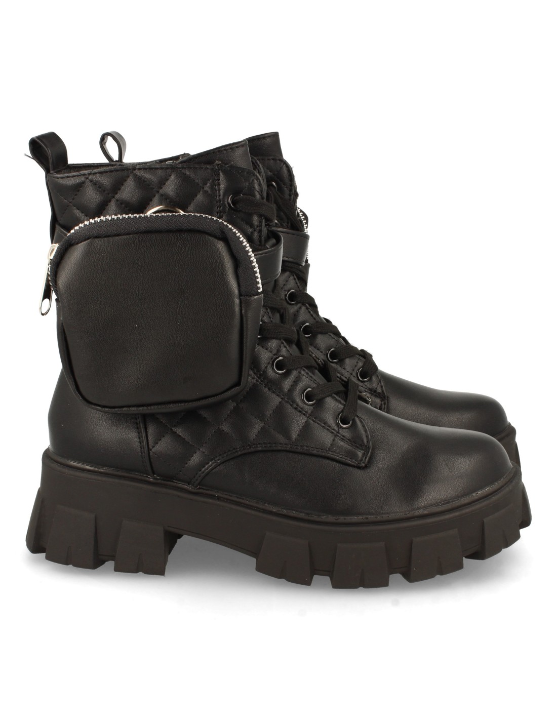 Botin de Plataforma para Mujer, con Suela Dentada, Bolsillo con Cremallera, Acolchado, y Cierre de Cordones, Otoño Invierno 2021