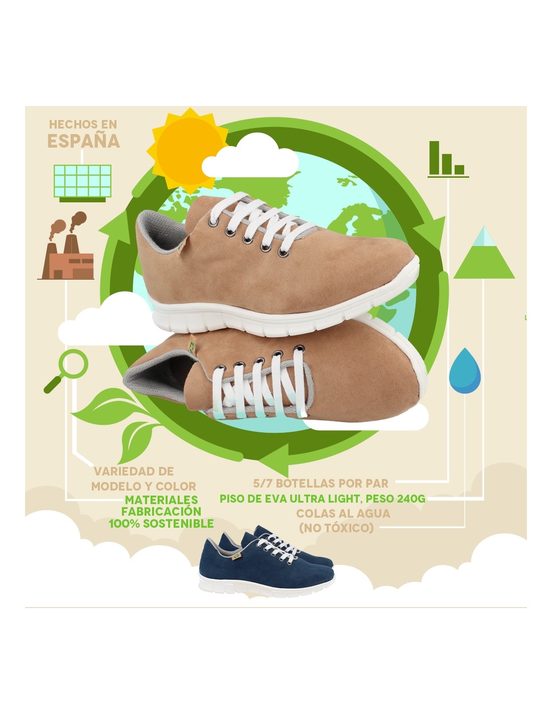 Zapatillas ecológicas para Mujer, Fabricadas con materiales 100% reciclados y Ecológicos. Eco Friendly y Bio.Fabricado en España.