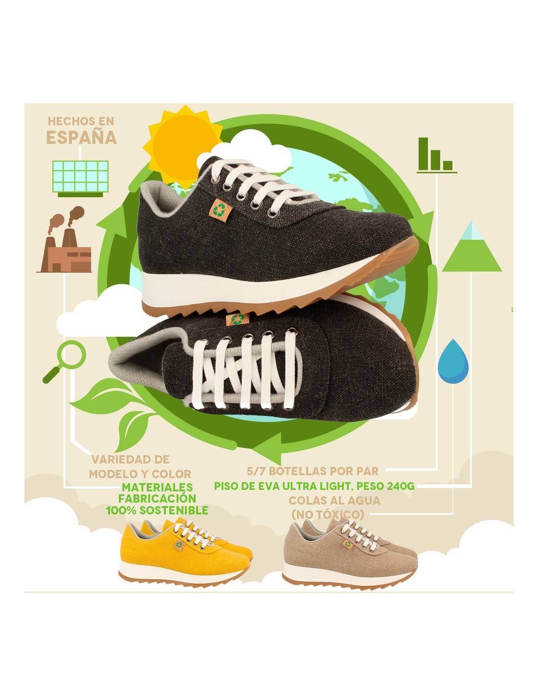 Zapatillas ecológicas para Mujer, Fabricadas con materiales 100% reciclados y Ecológicos. Eco Friendly y Bio.Fabricado en España.