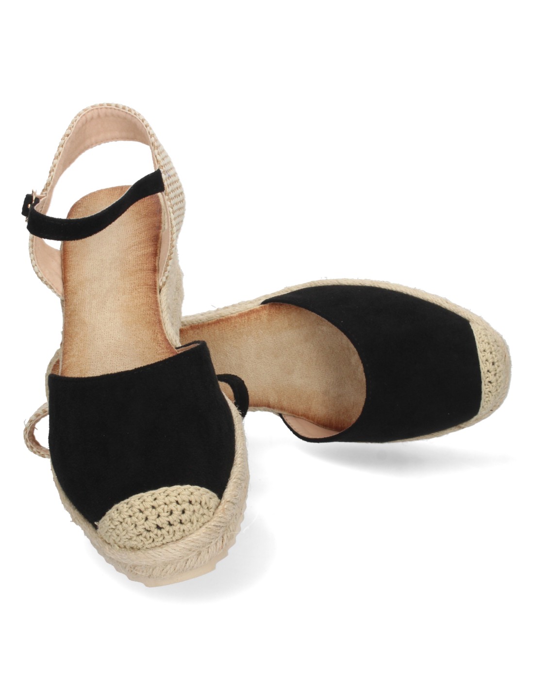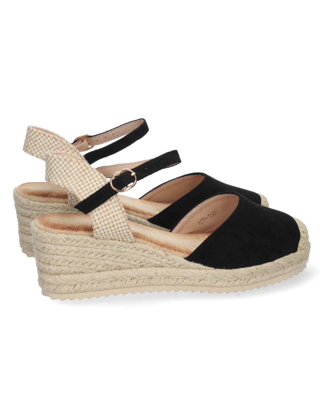 Sandalia de Cuña para Mujer, Forrado de Yute, Pala Cerrada, y Cierre de Hebilla, Primavera Verano 2022