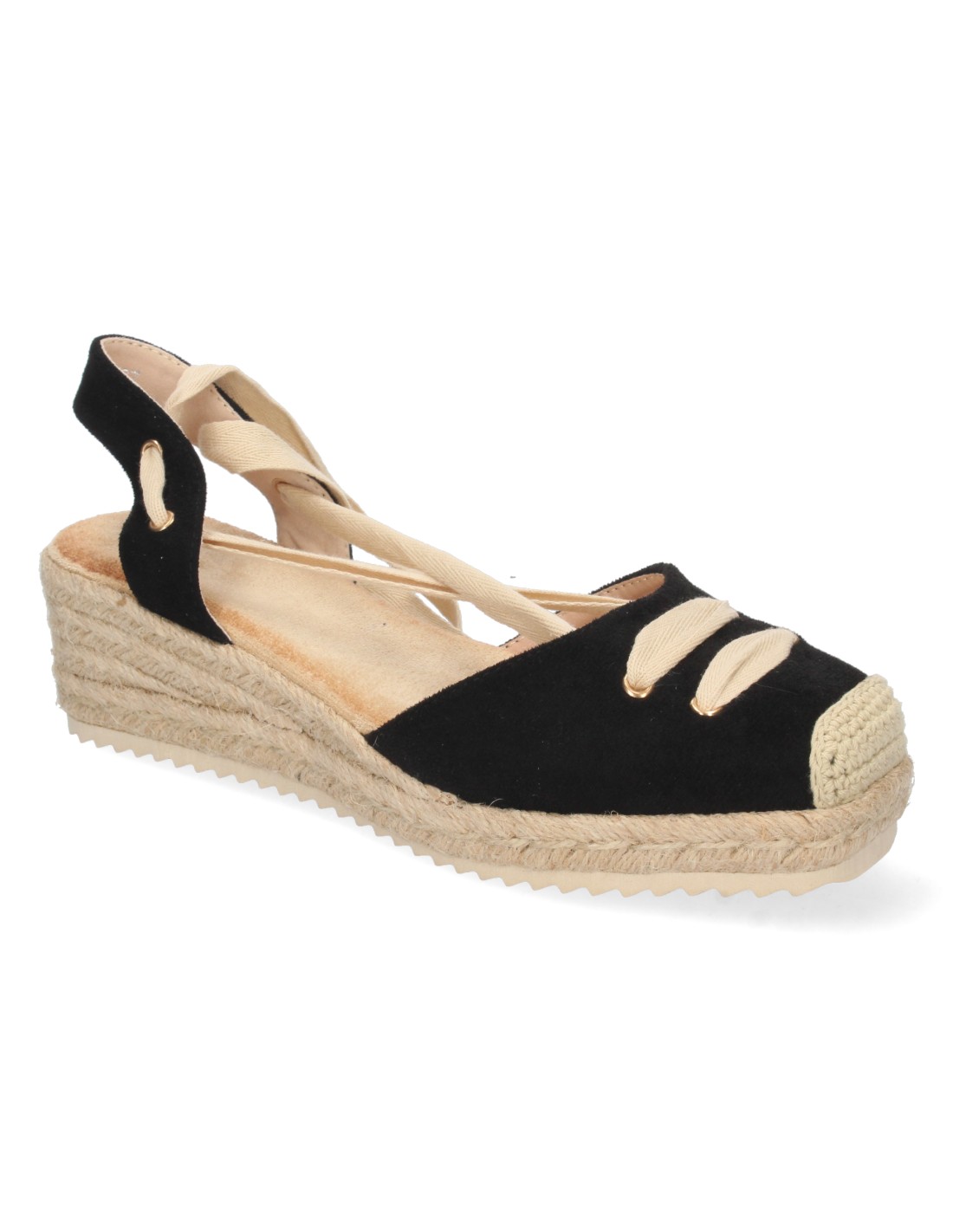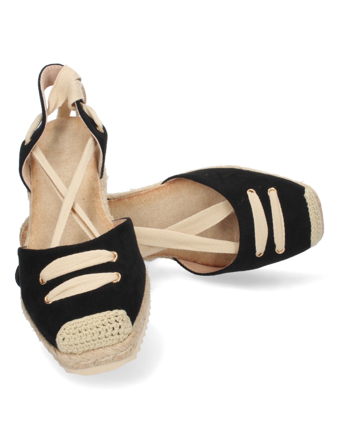 Sandalia de Cuña para Mujer, Forrada de Yute, con Pala Cerrada, y Cierre de Cordones, Primavera Verano 2022
