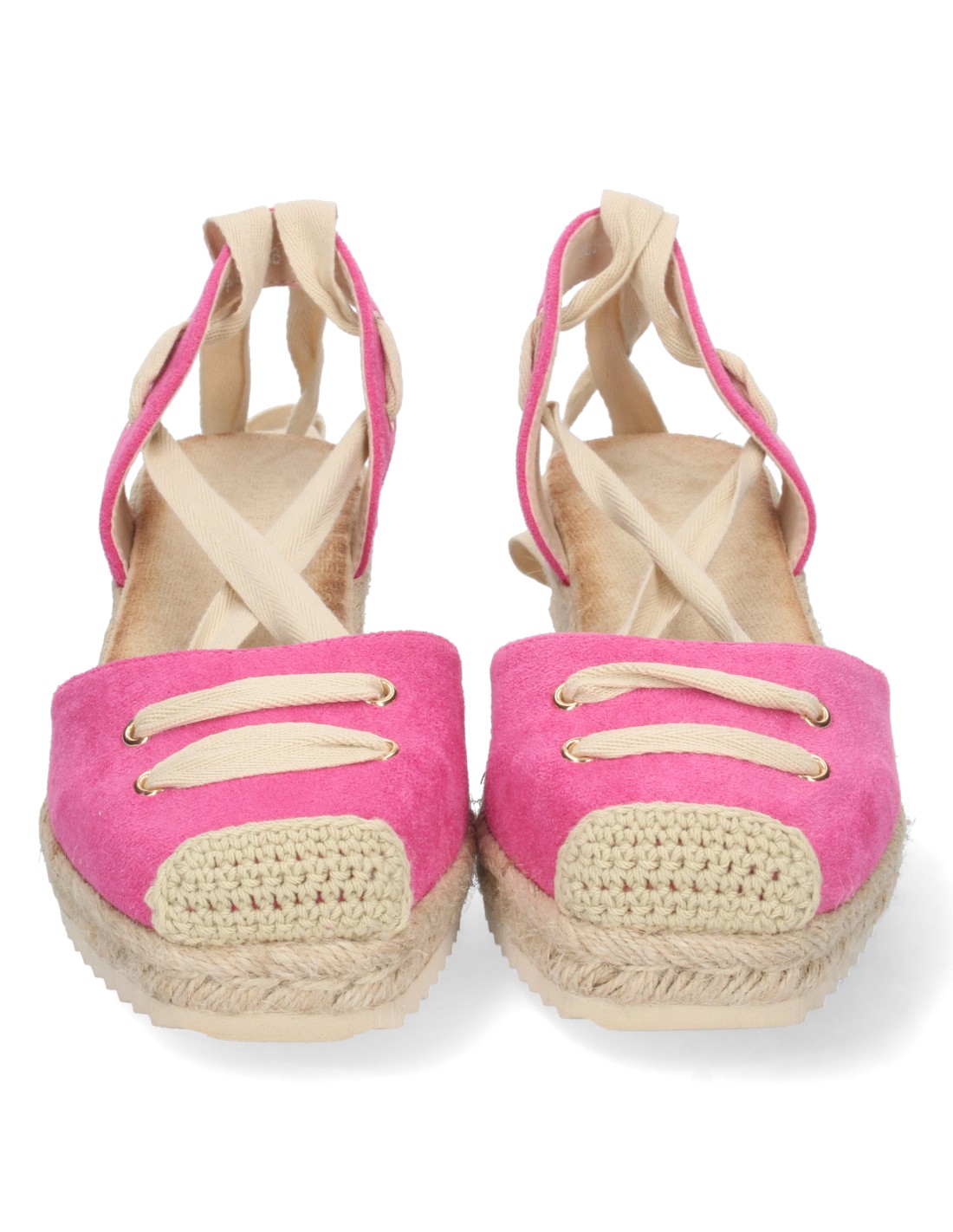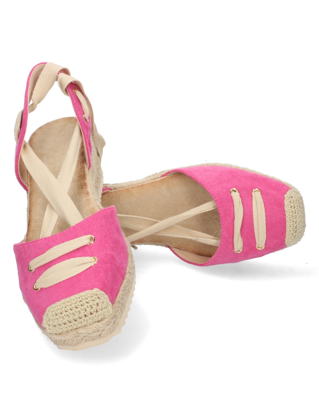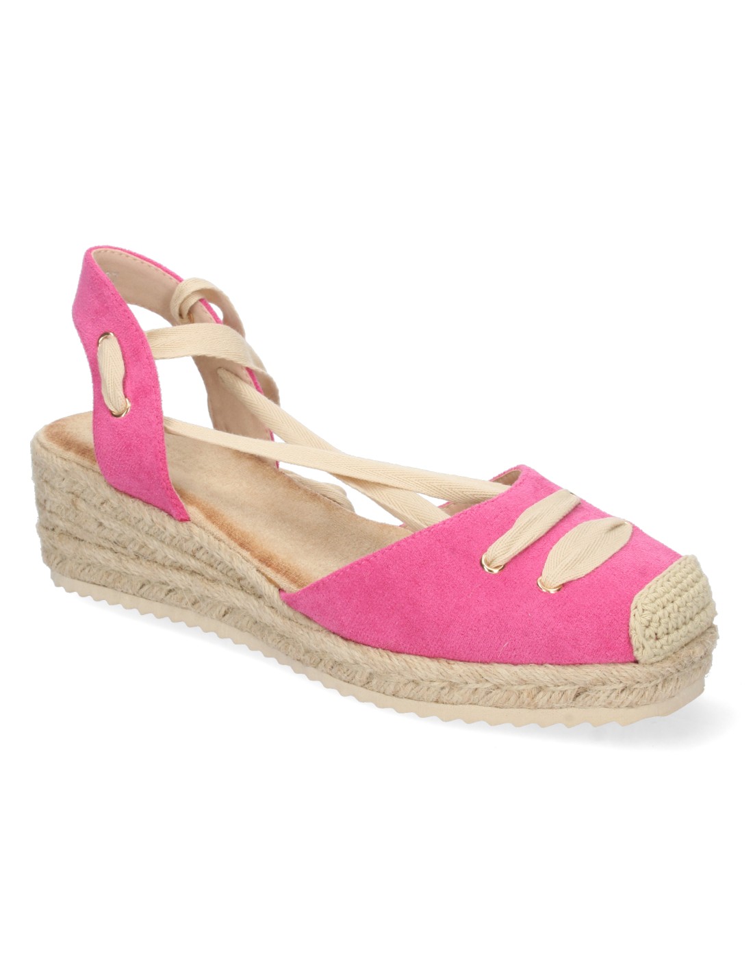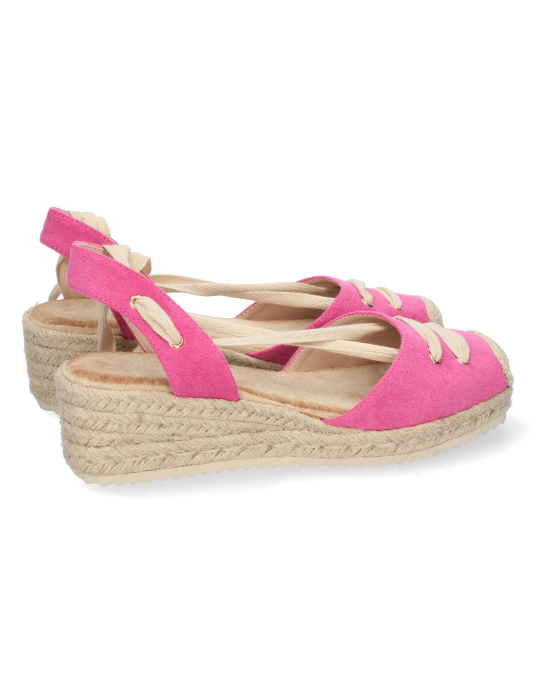 Sandalia de Cuña para Mujer, Forrada de Yute, con Pala Cerrada, y Cierre de Cordones, Primavera Verano 2022