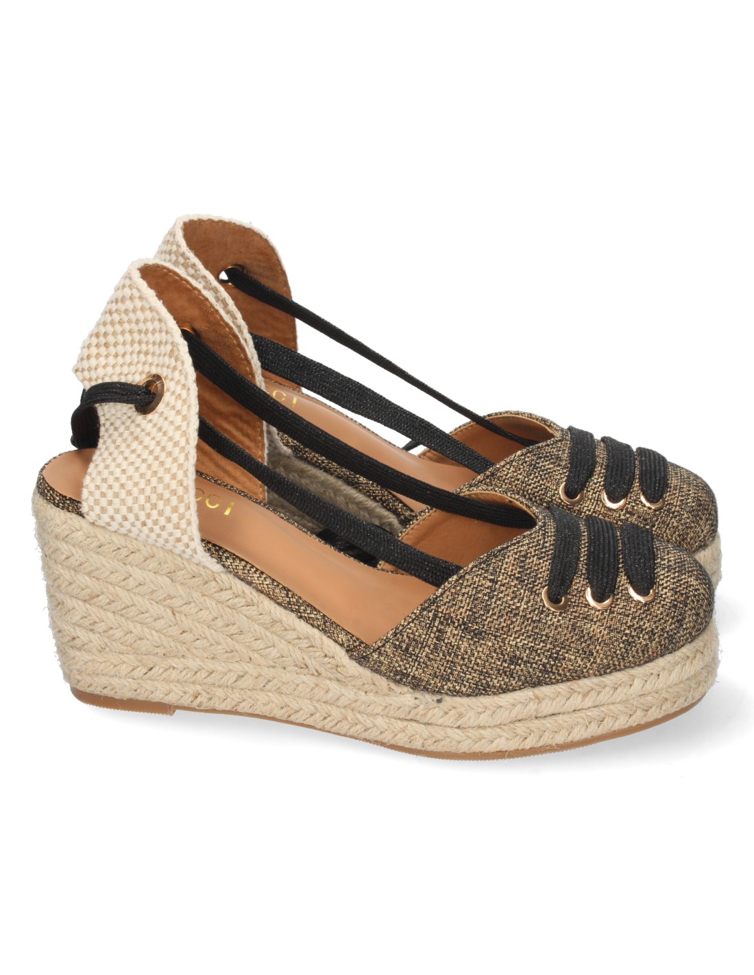 Sandalia de Cuña para Mujer, Forrada de Yute, Pala Cerrada, y Cierre de Cordones, Primavera Verano 2022