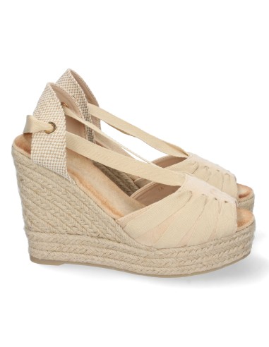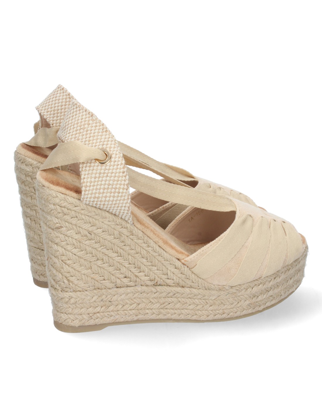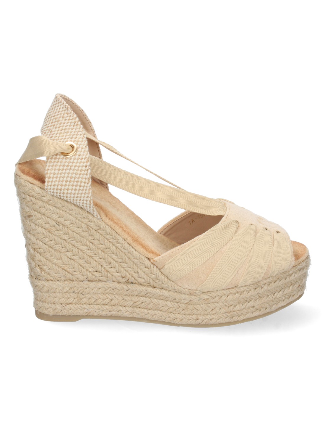 Sandalia de Cuña para Mujer, Forrada de Yute, con Pala Abierta, y Cierre de Cordones, Primavera Verano 2022