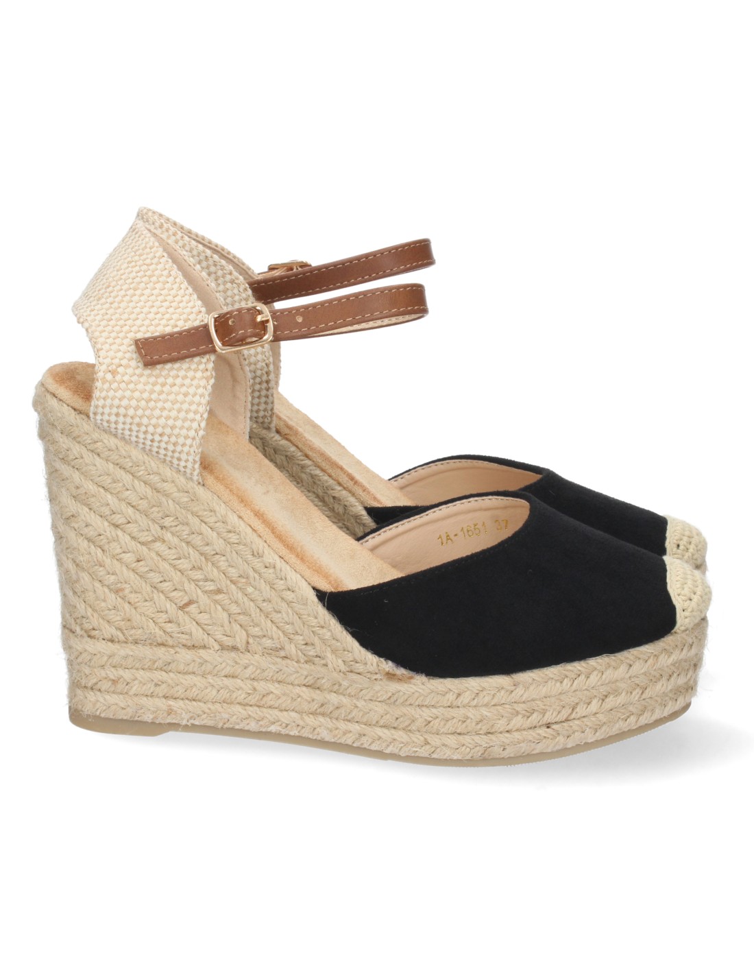 Sandalia de Cuña para Mujer, Forrada de Yute, con Pala Cerrada, y Cierre de Hebilla, Primavera Verano 2022