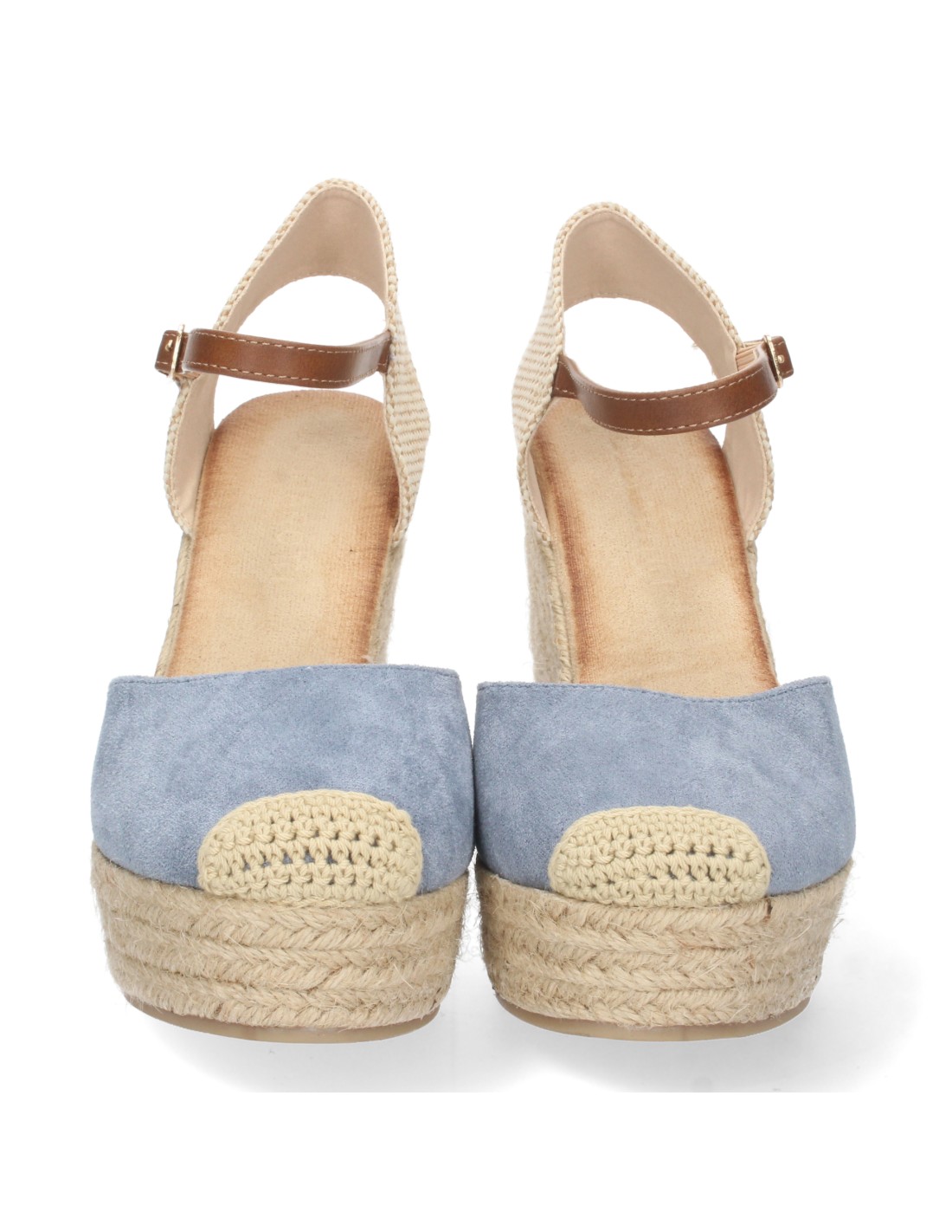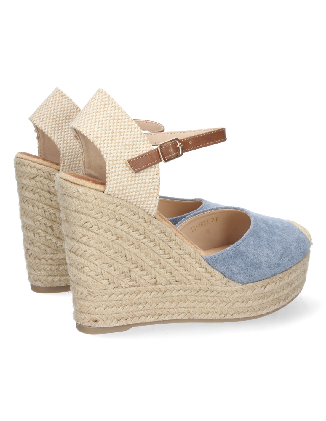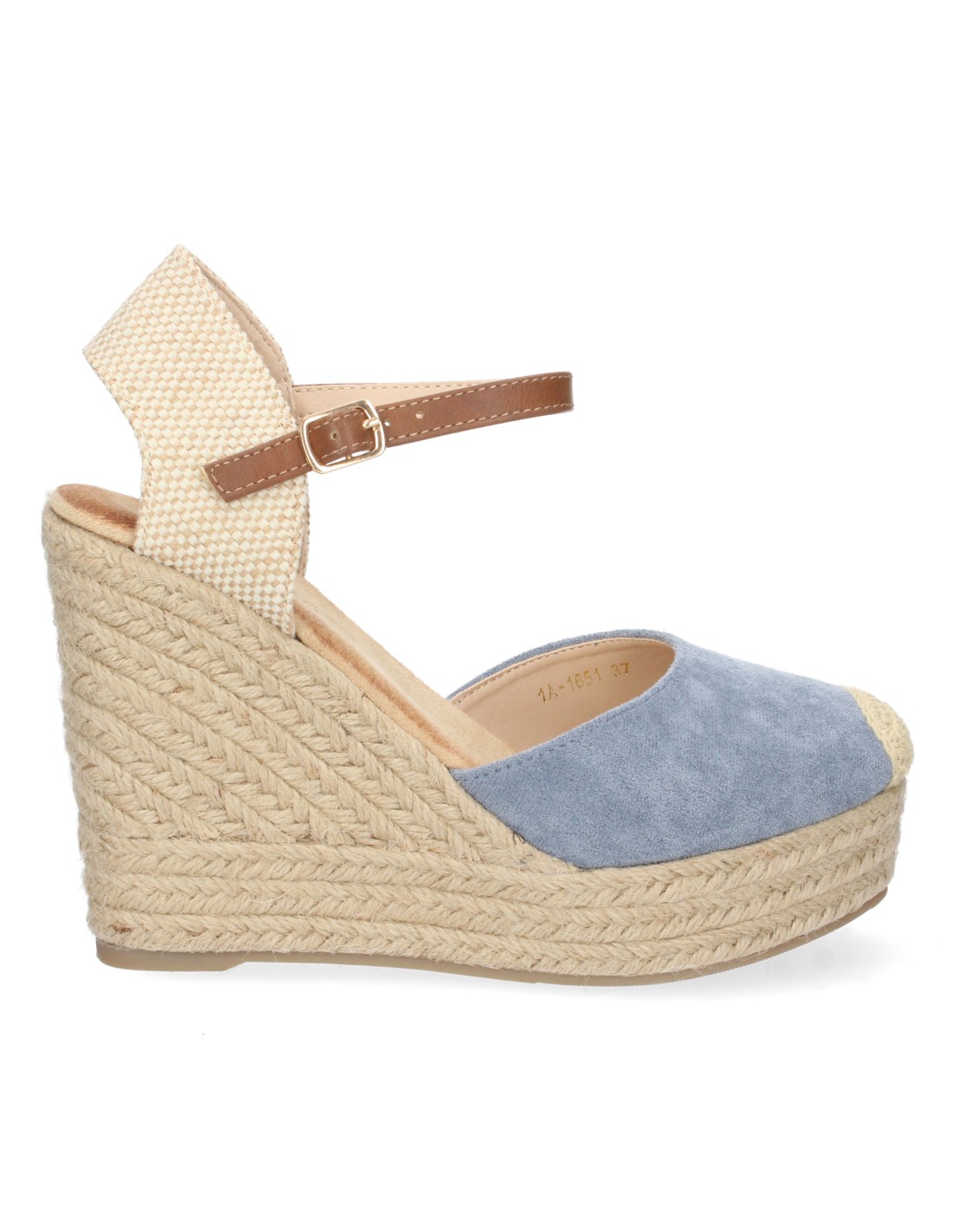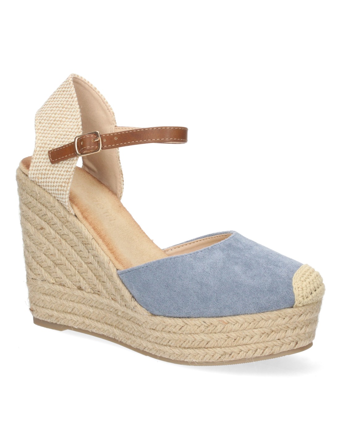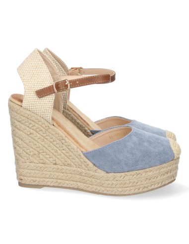 Sandalia de Cuña para Mujer, Forrada de Yute, con Pala Cerrada, y Cierre de Hebilla, Primavera Verano 2022