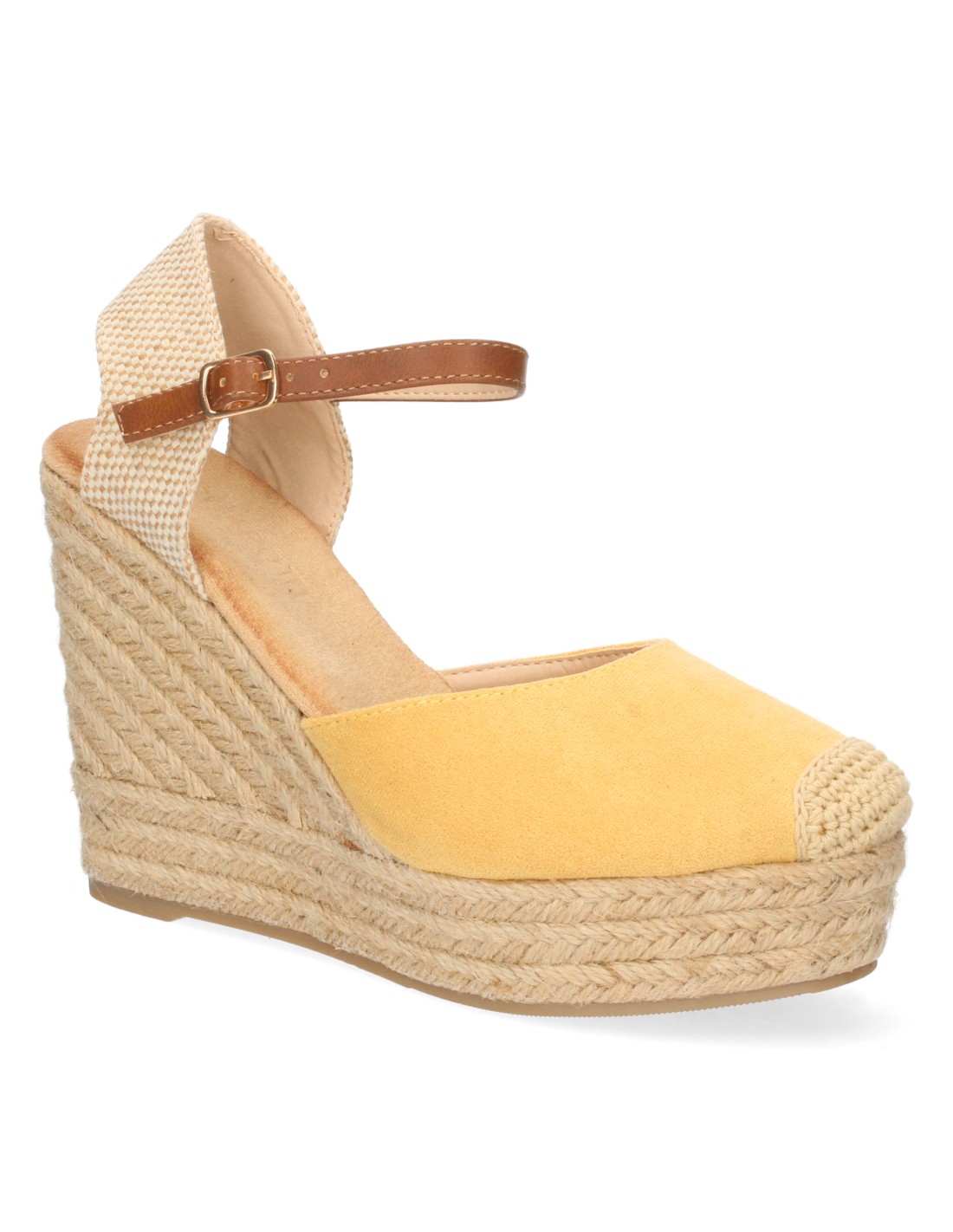 Sandalia de Cuña para Mujer, Forrada de Yute, con Pala Cerrada, y Cierre de Hebilla, Primavera Verano 2022