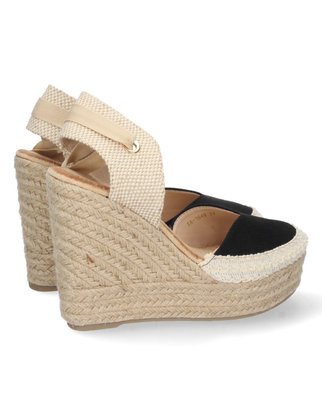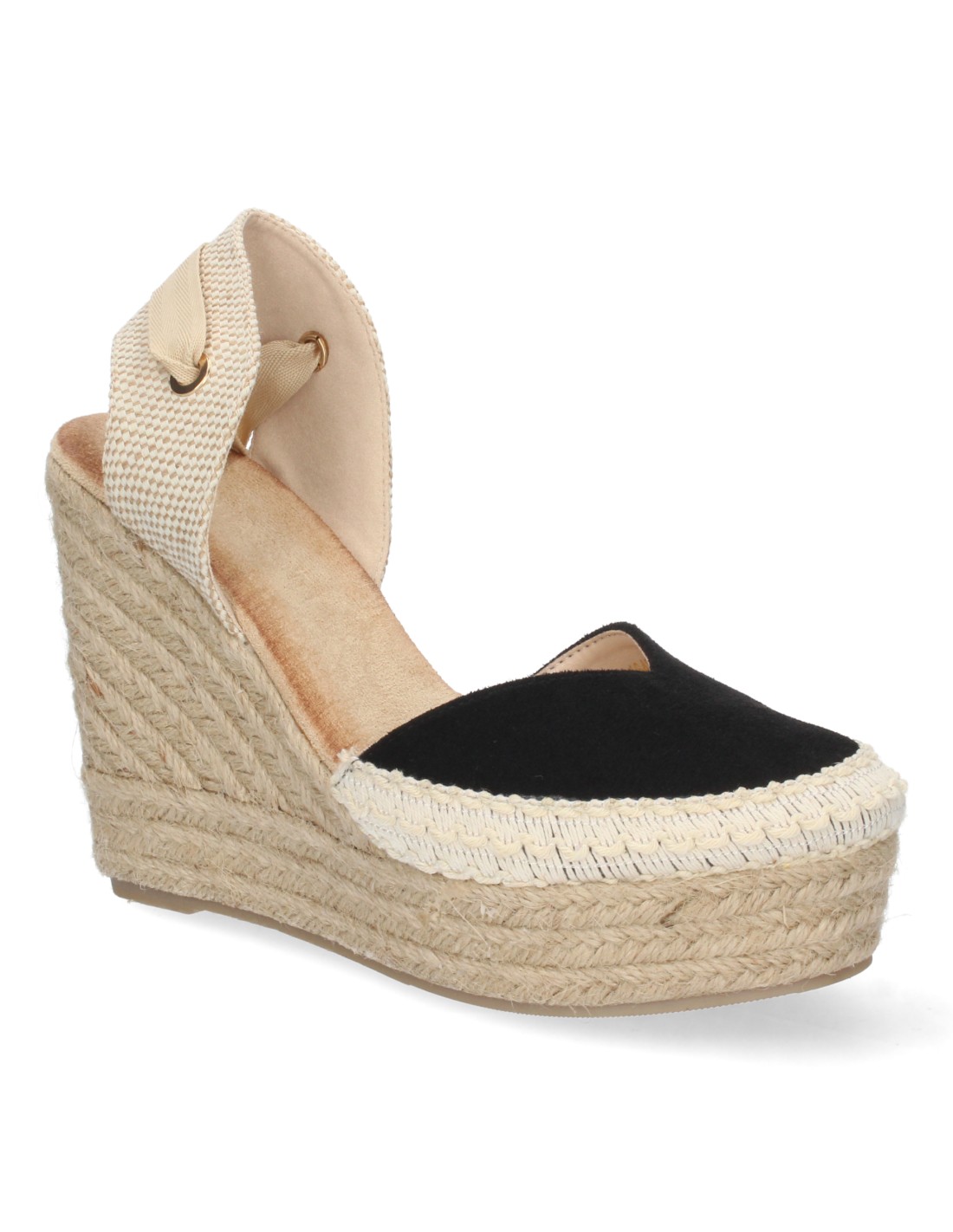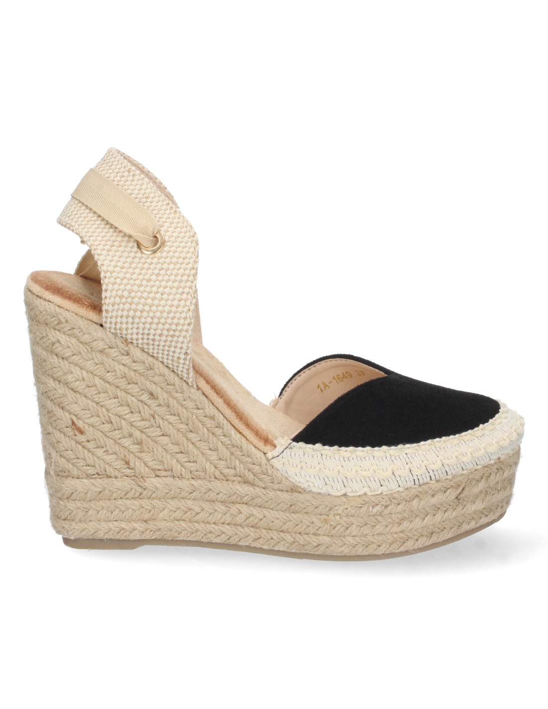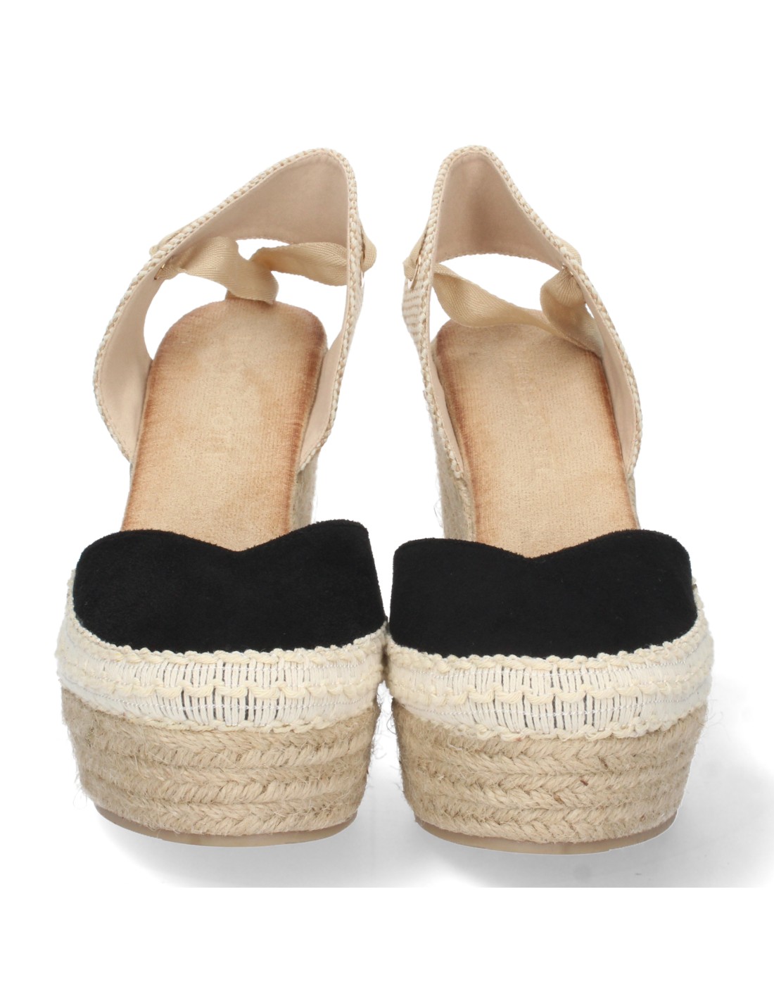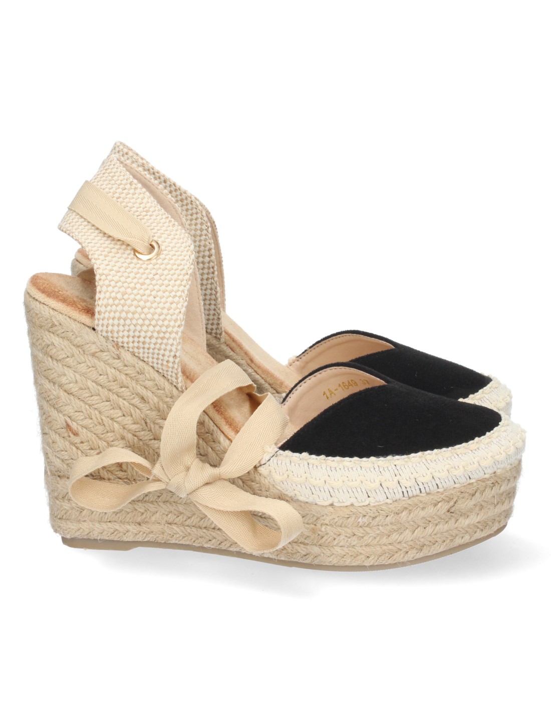 Sandalia de Cuña para Mujer, Forrada de Yute, con Pala Cerrada, y Cierre de Cordones, Primavera Verano 2022