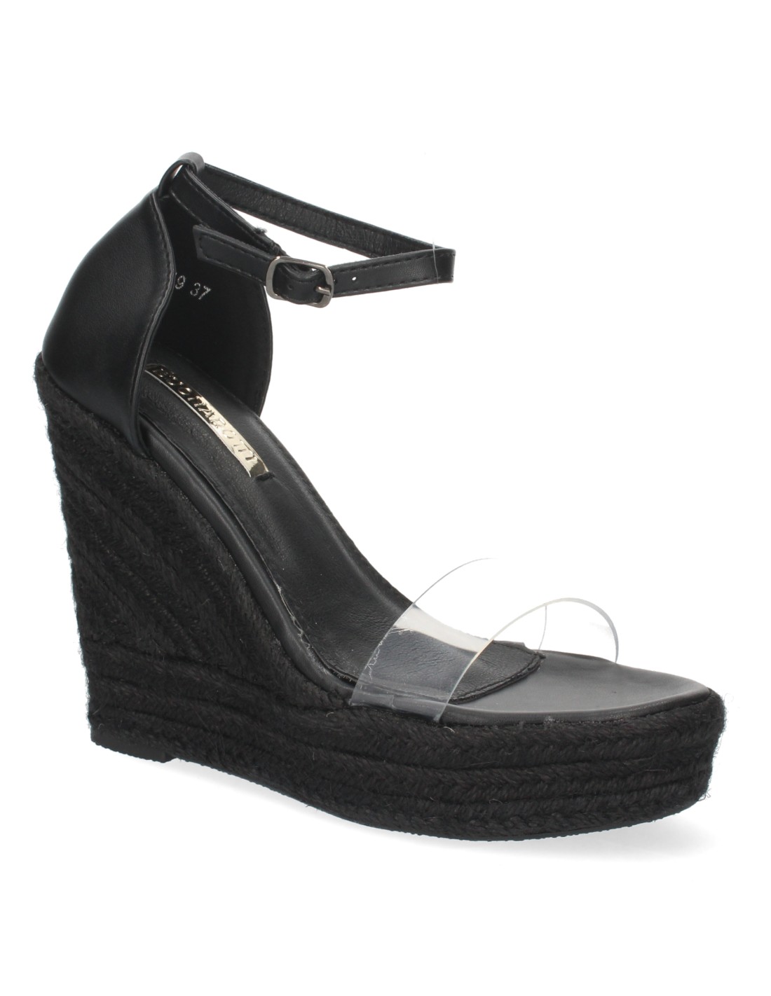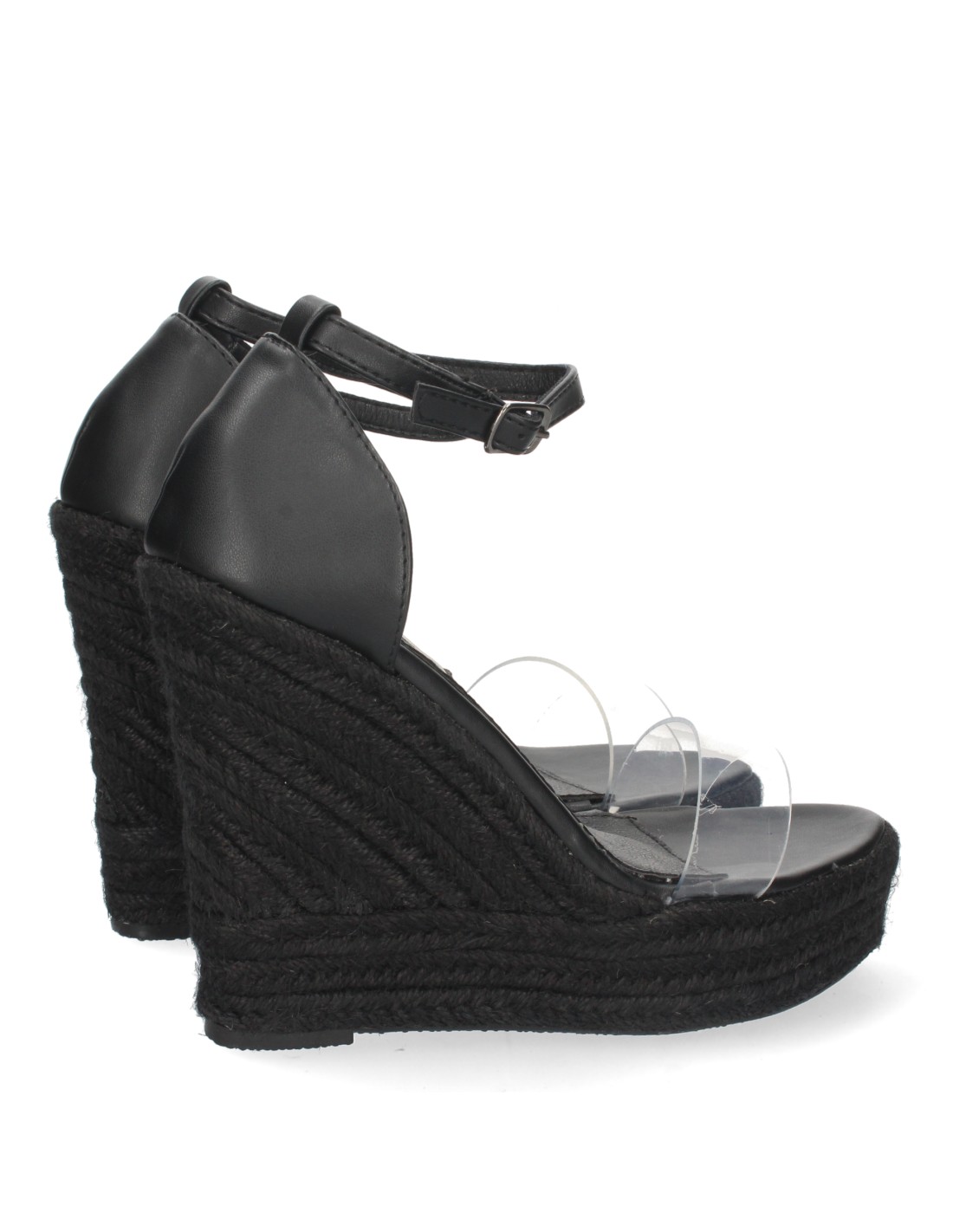 Sandalia de Cuña para Mujer, Forrado de Yute, con Pala Transparente, y Cierre de Hebilla, Primavera Verano 2022