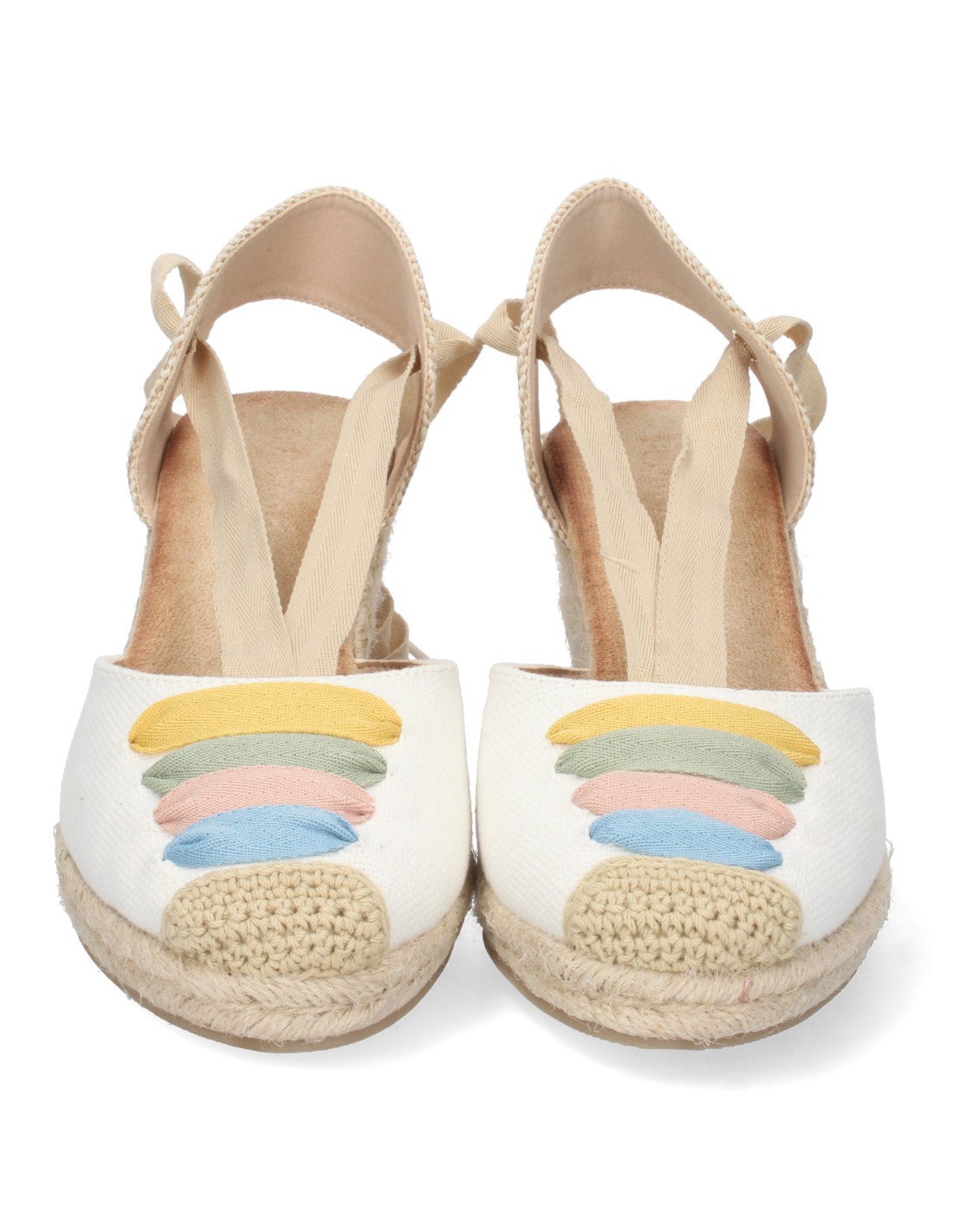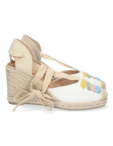 Sandalia de Cuña para Mujer, Forrado de Yute, con Pala Cerrada, y Cierre de Cordones, Primavera Verano 2022