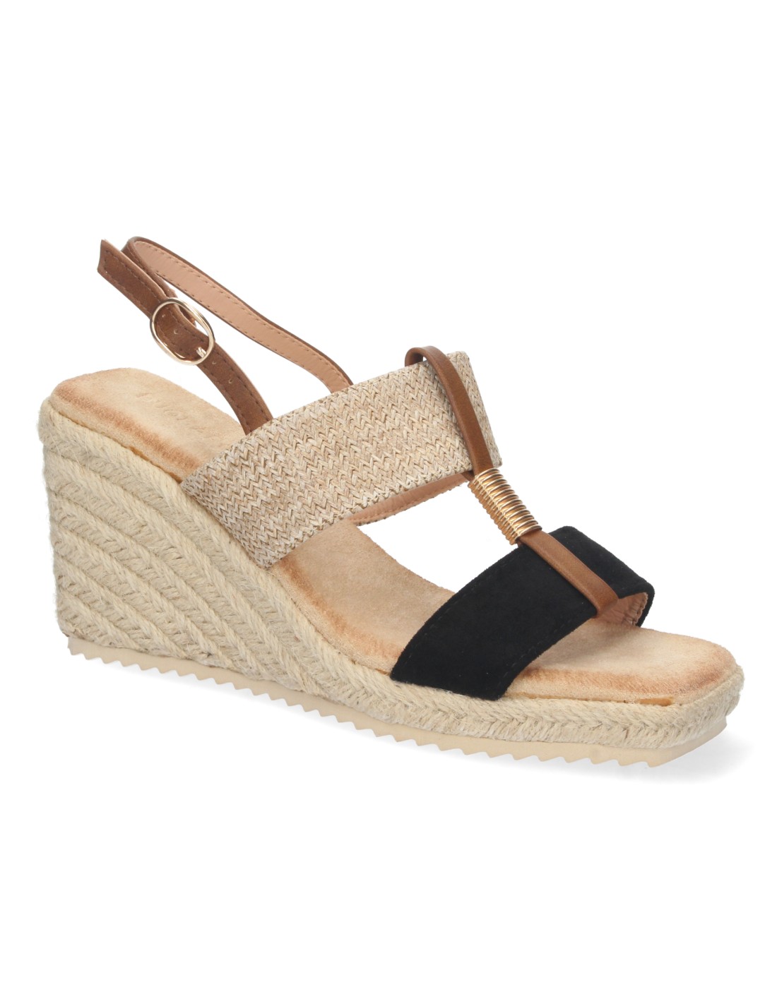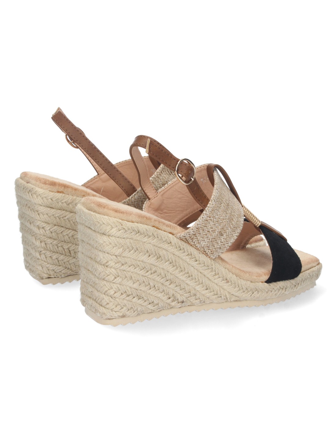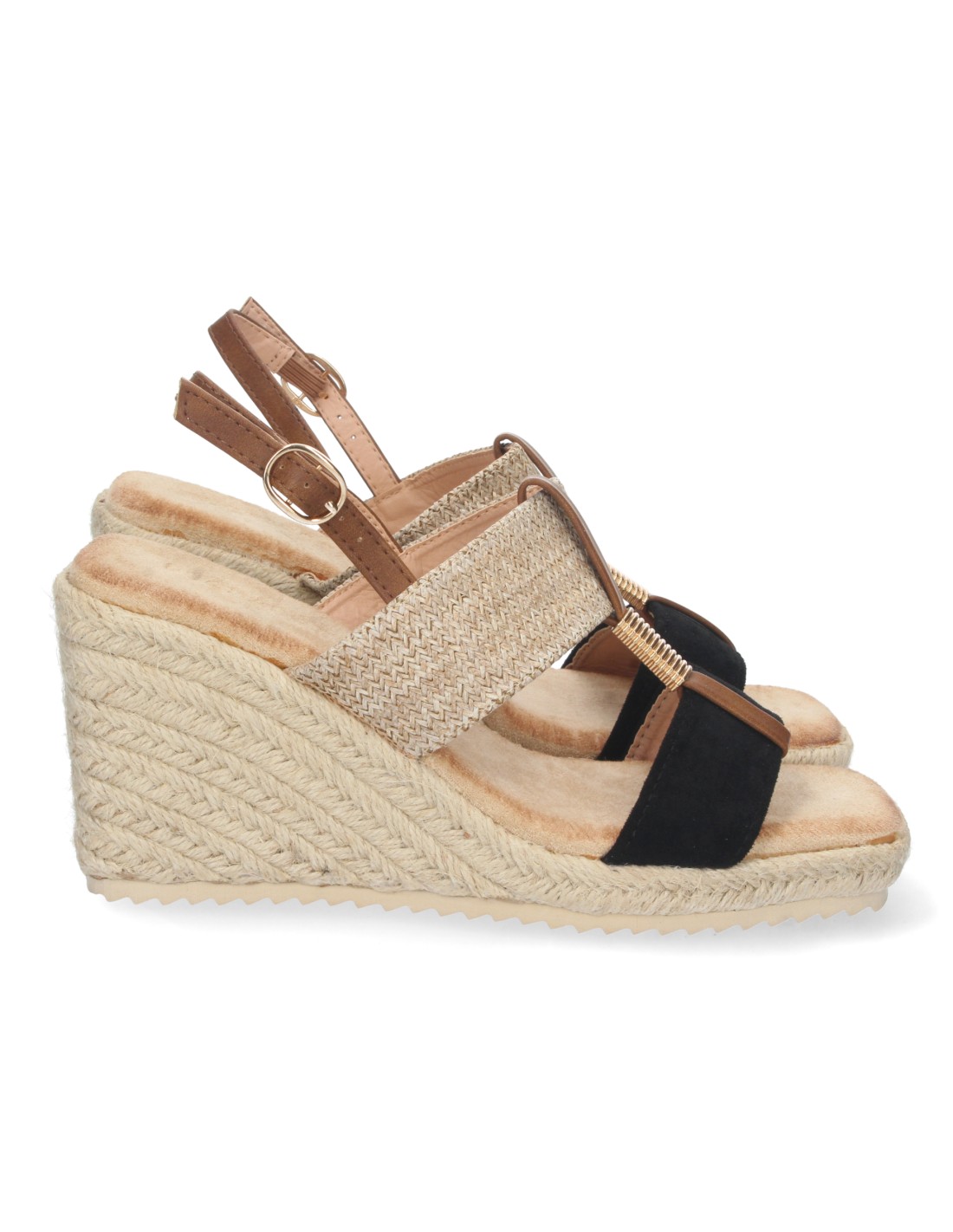 Sandalia de Cuña para Mujer, Comoda, Forrada de Yute, con Doble Pala, y Cierre de Hebilla, Primavera Verano 2022
