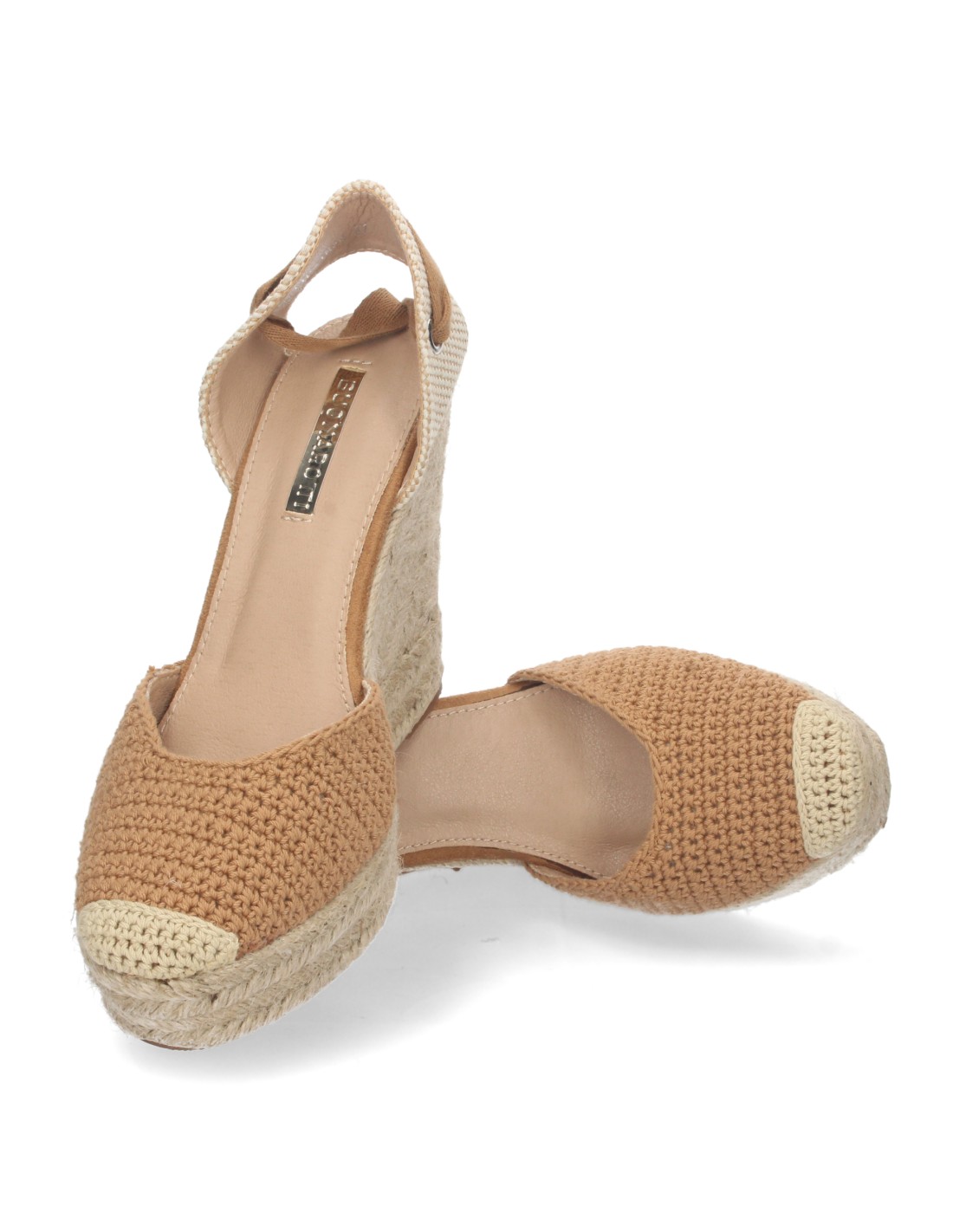 Sandalia de Cuña para Mujer, Comodas, Forrada de Yute, Pala Cerrada, y Cierre de Cordones, Primavera Verano 2022