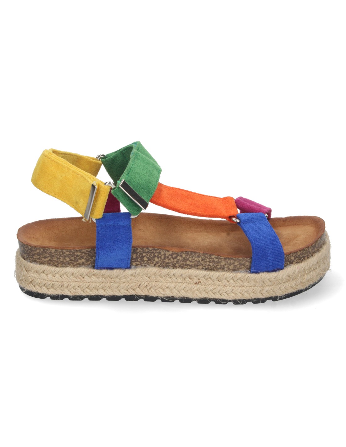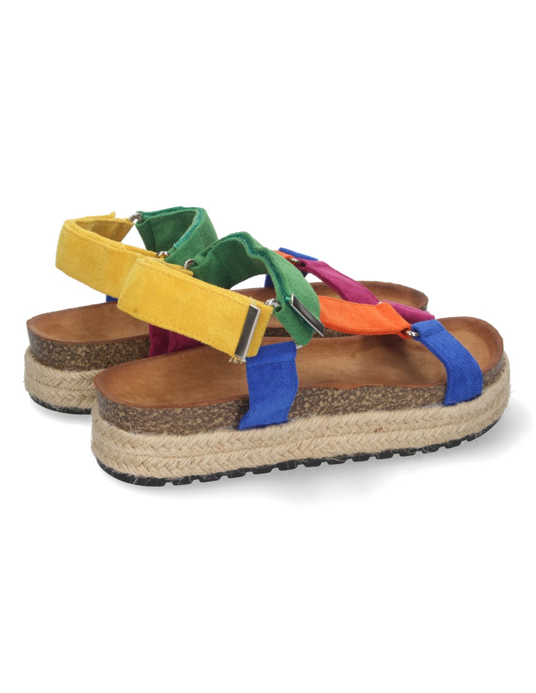 Sandalia Plana para Mujer, Forrada de Yute, Comodas, con Planta Bio, Multicolor, y Cierre de Velcro, Primavera Verano 2022