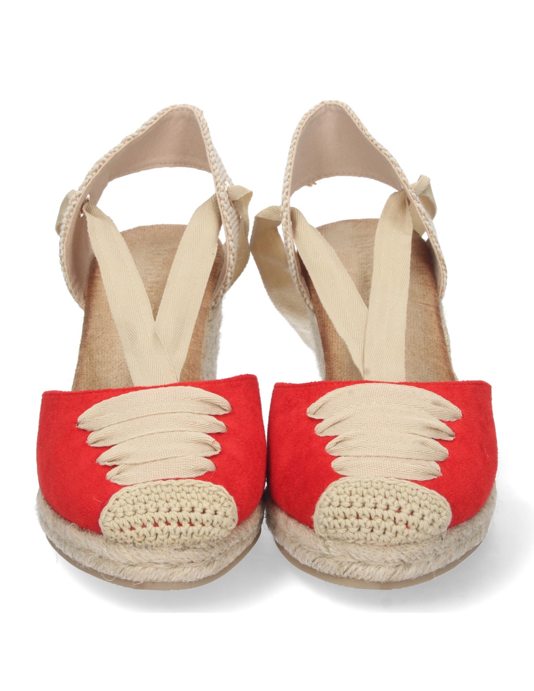 Sandalia de Cuña para Mujer, Forrado de Yute, con Pala Cerrada, y Cierre de Cordones, Primavera Verano 2022