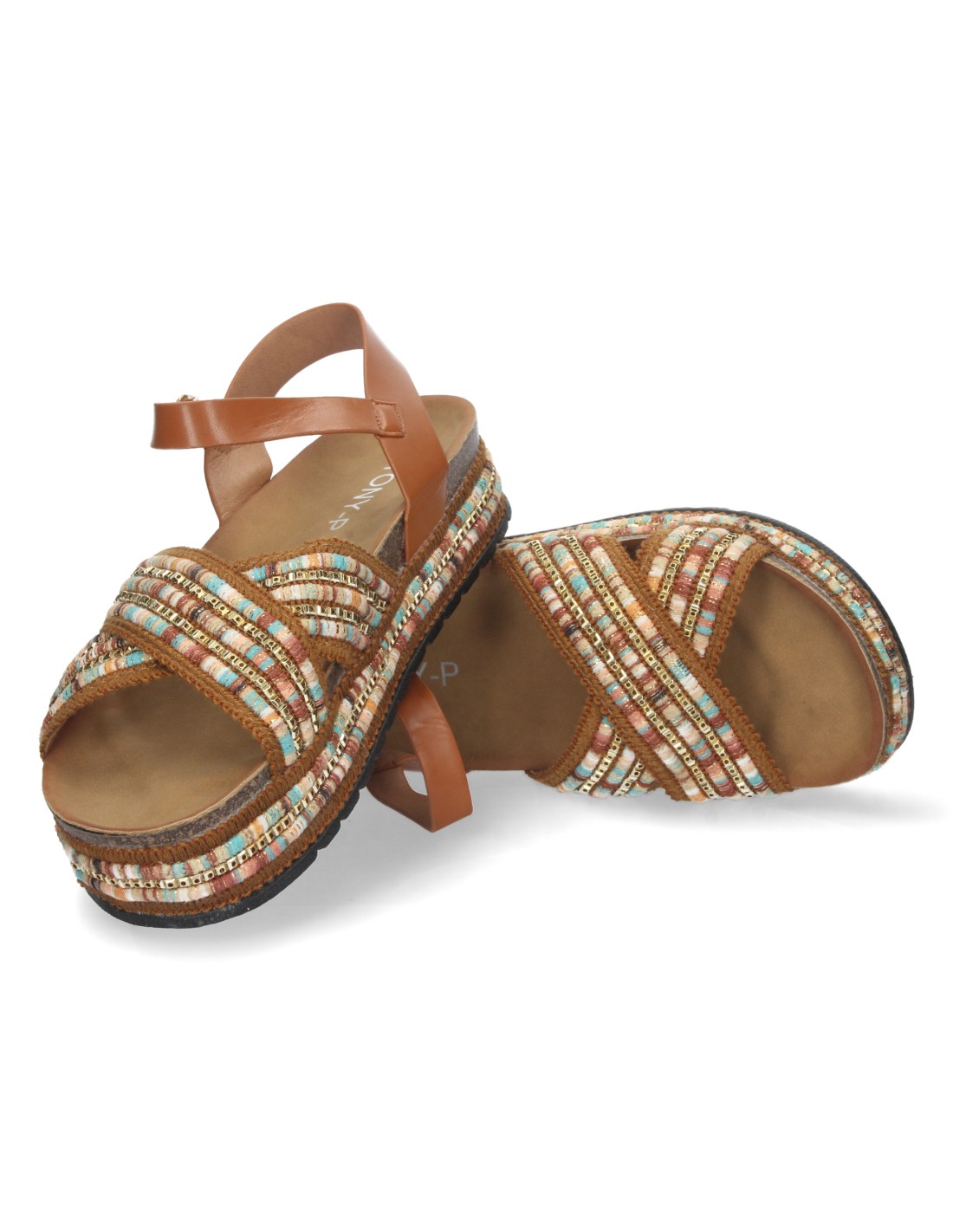 Sandalia Plana para Mujer, con Planta Bio, Palas Cruzadas, y Cierre de Hebilla, Primavera Verano 2022