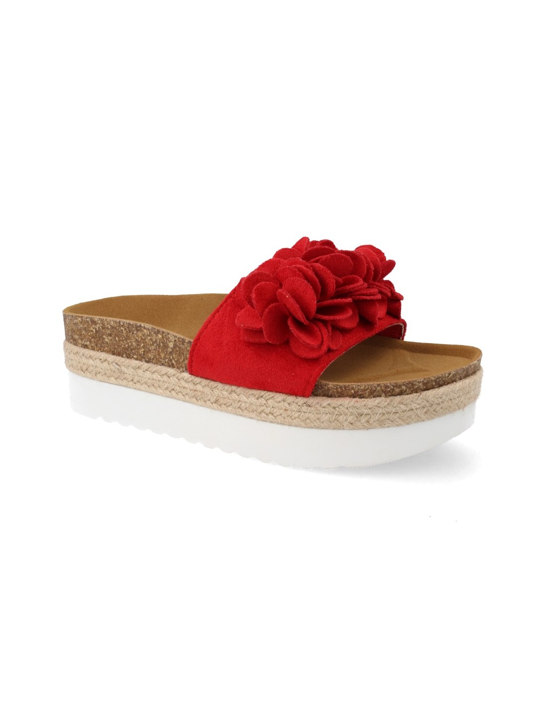 Sandalia de Mujer Plataforma con Yute y Eva Planta Anatomica Modelo con Flores en la Pala Primavera Verano 2019