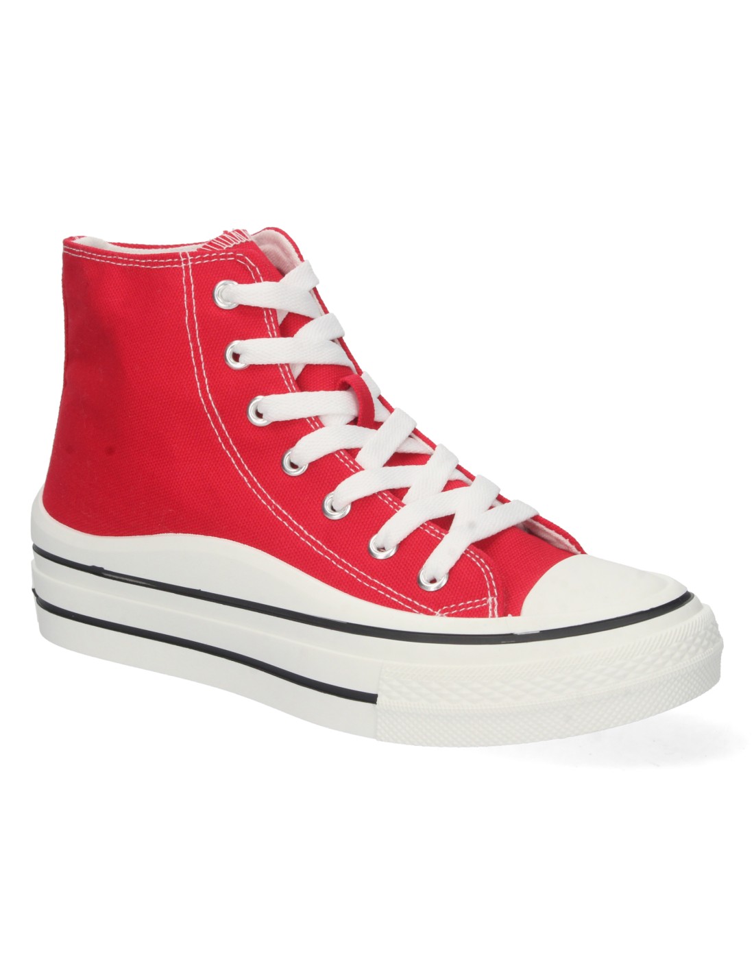 Zapatilla Abotinada, Plana para Mujer, Estilo Bamba, con Material Textil, y Cierre de Cordones, Primavera Verano 2022