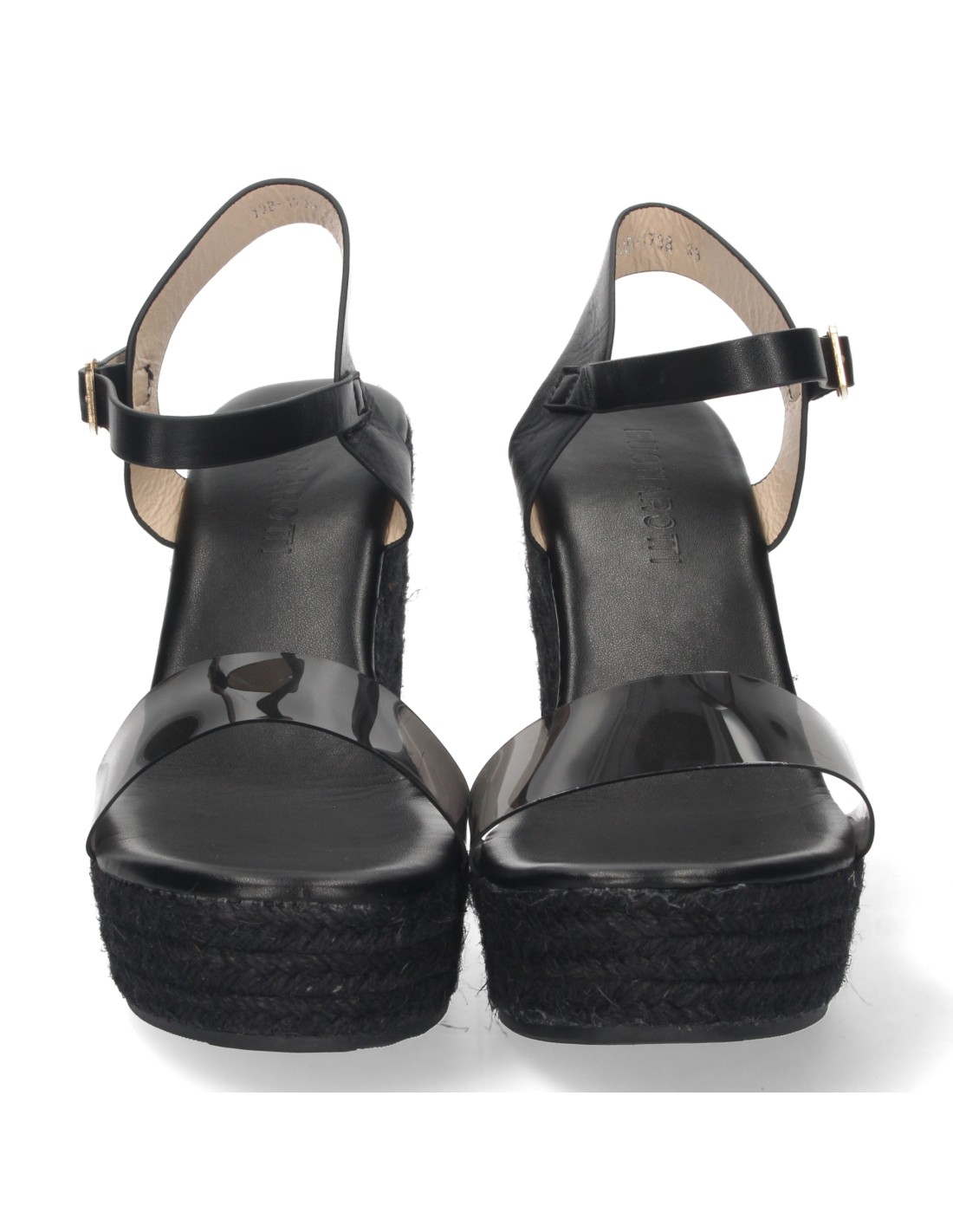 Sandalia de Cuña para Mujer, Forrada de Yute Pintado, Pala de Vinilo Transparente, y Cierre de Hebilla, Primavera Verano 2022