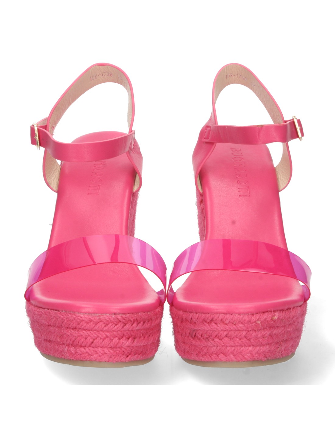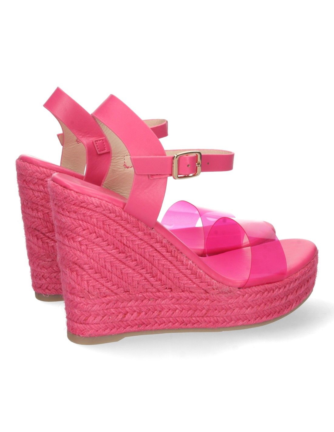 Sandalia de Cuña para Mujer, Forrada de Yute Pintado, Pala de Vinilo Transparente, y Cierre de Hebilla, Primavera Verano 2022