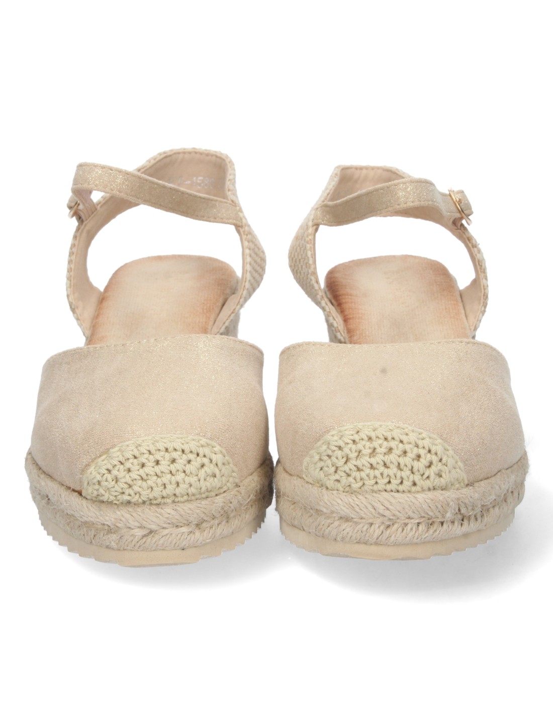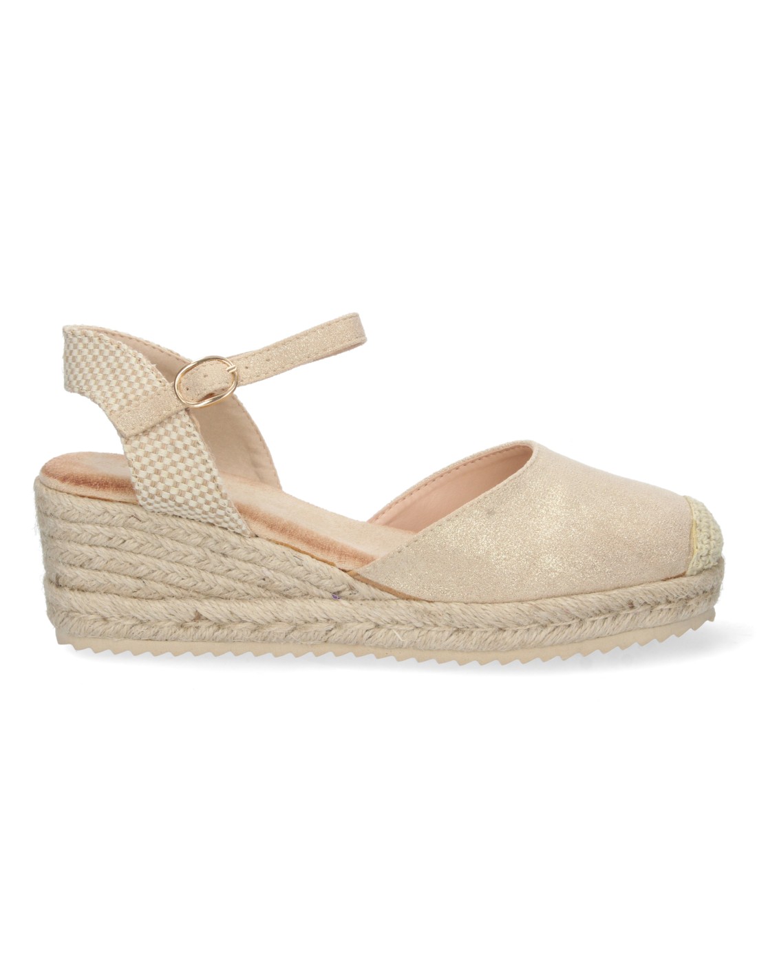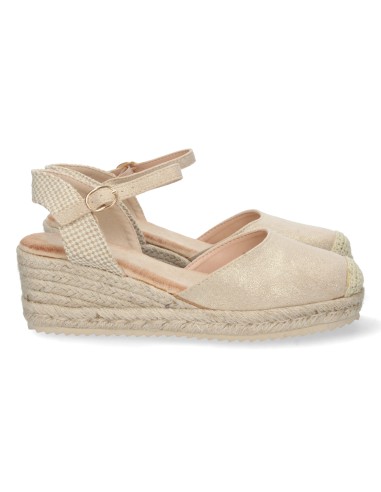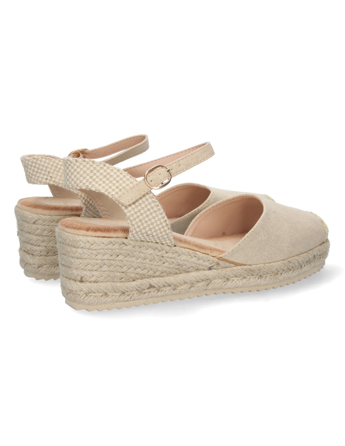 Sandalia de Cuña para Mujer, Forrado de Yute, Pala Cerrada, y Cierre de Hebilla, Primavera Verano 2022