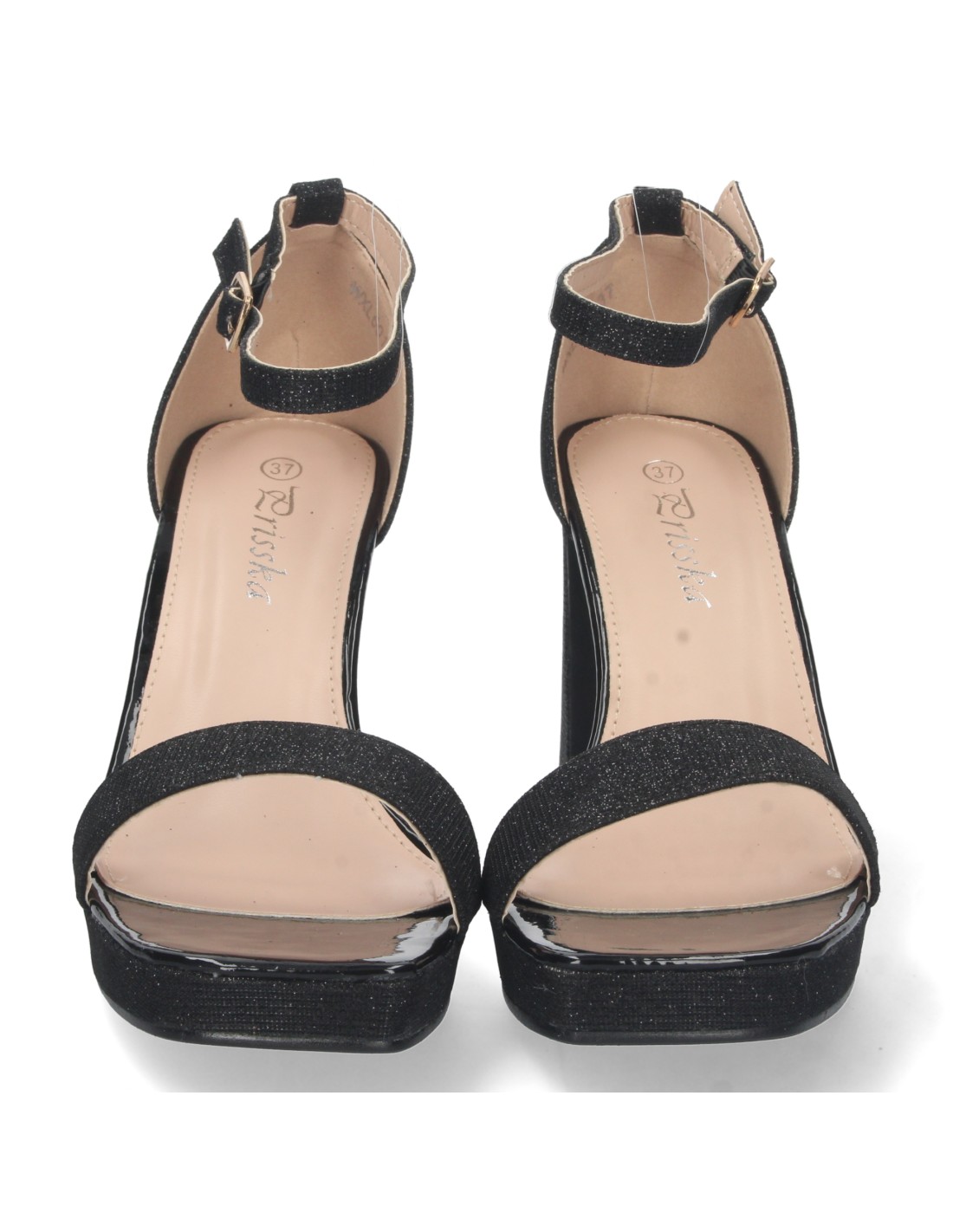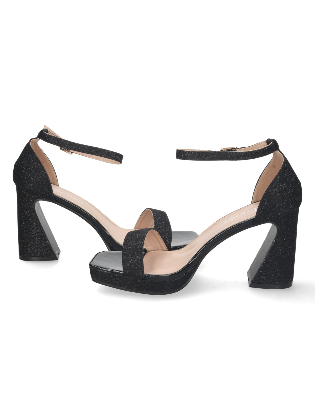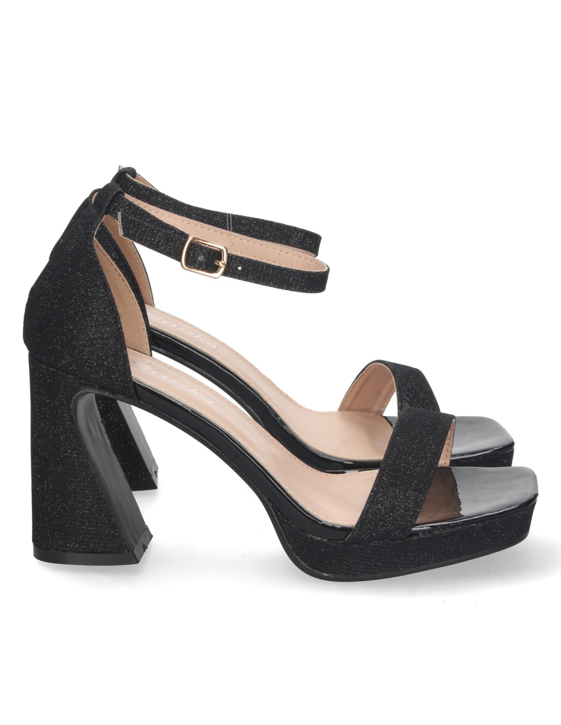 Sandalia de Tacón para Mujer, Comoda, de Material Brillante, y Cierre de Hebilla, Otoño Invierno 2022