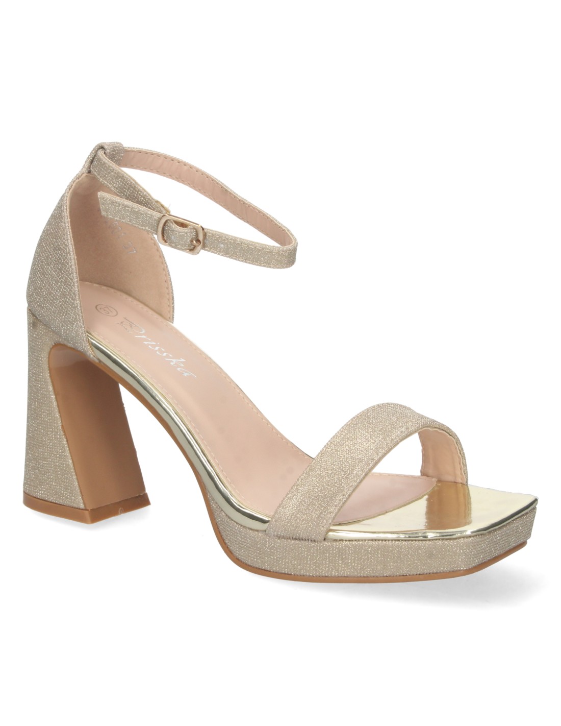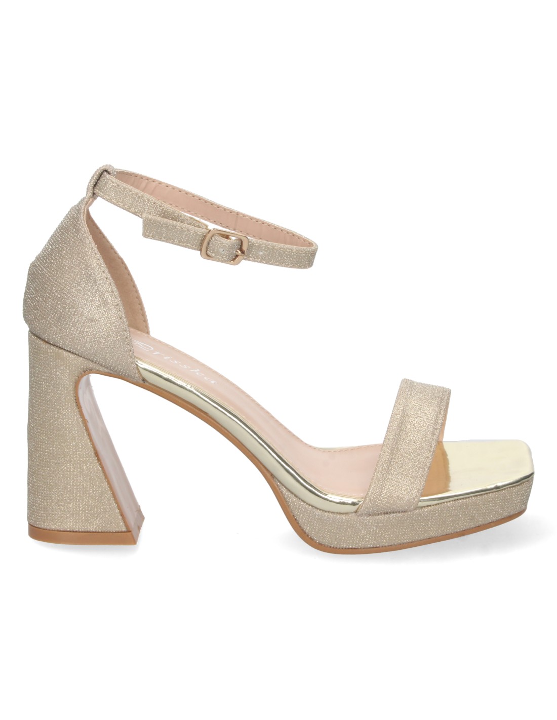 Sandalia de Tacón para Mujer, Comoda, de Material Brillante, y Cierre de Hebilla, Otoño Invierno 2022