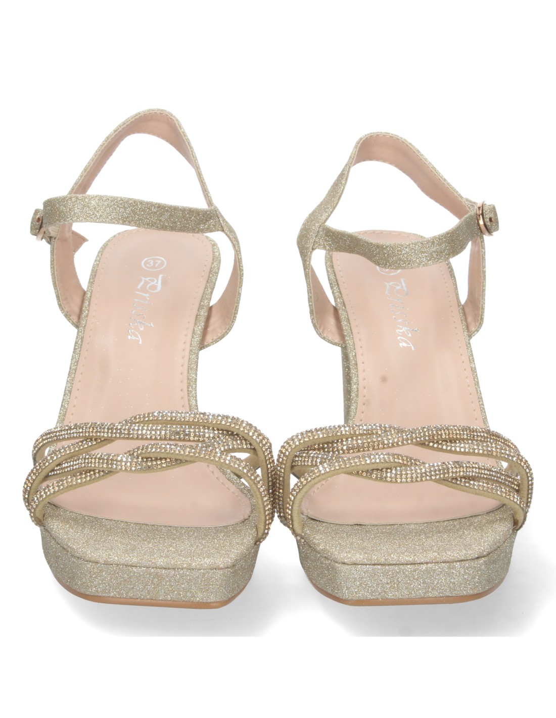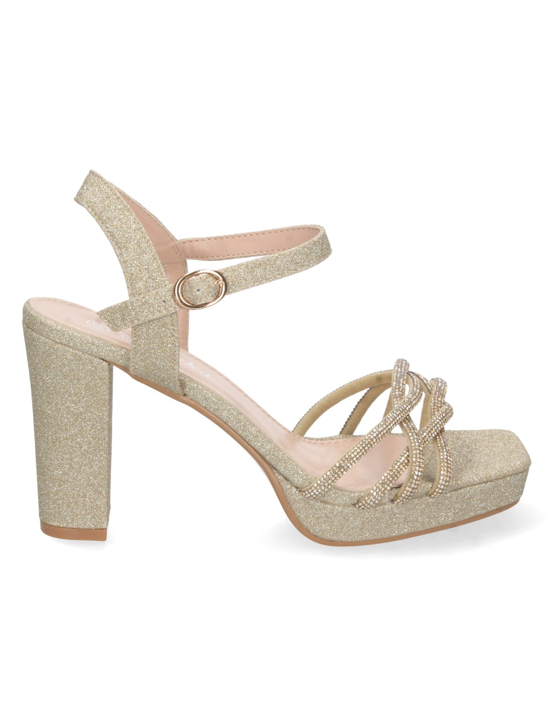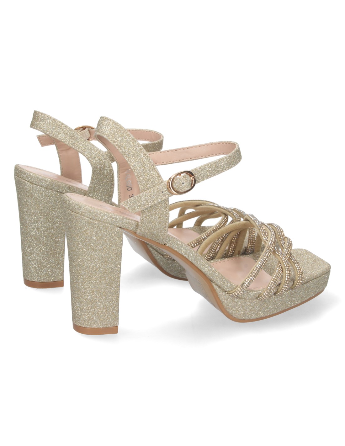 Sandalia de Tacon para Mujer, Comoda, de Material Brillante, con Palas Cruzadas, y Cierre de Hebilla, Otoño Invierno 2022