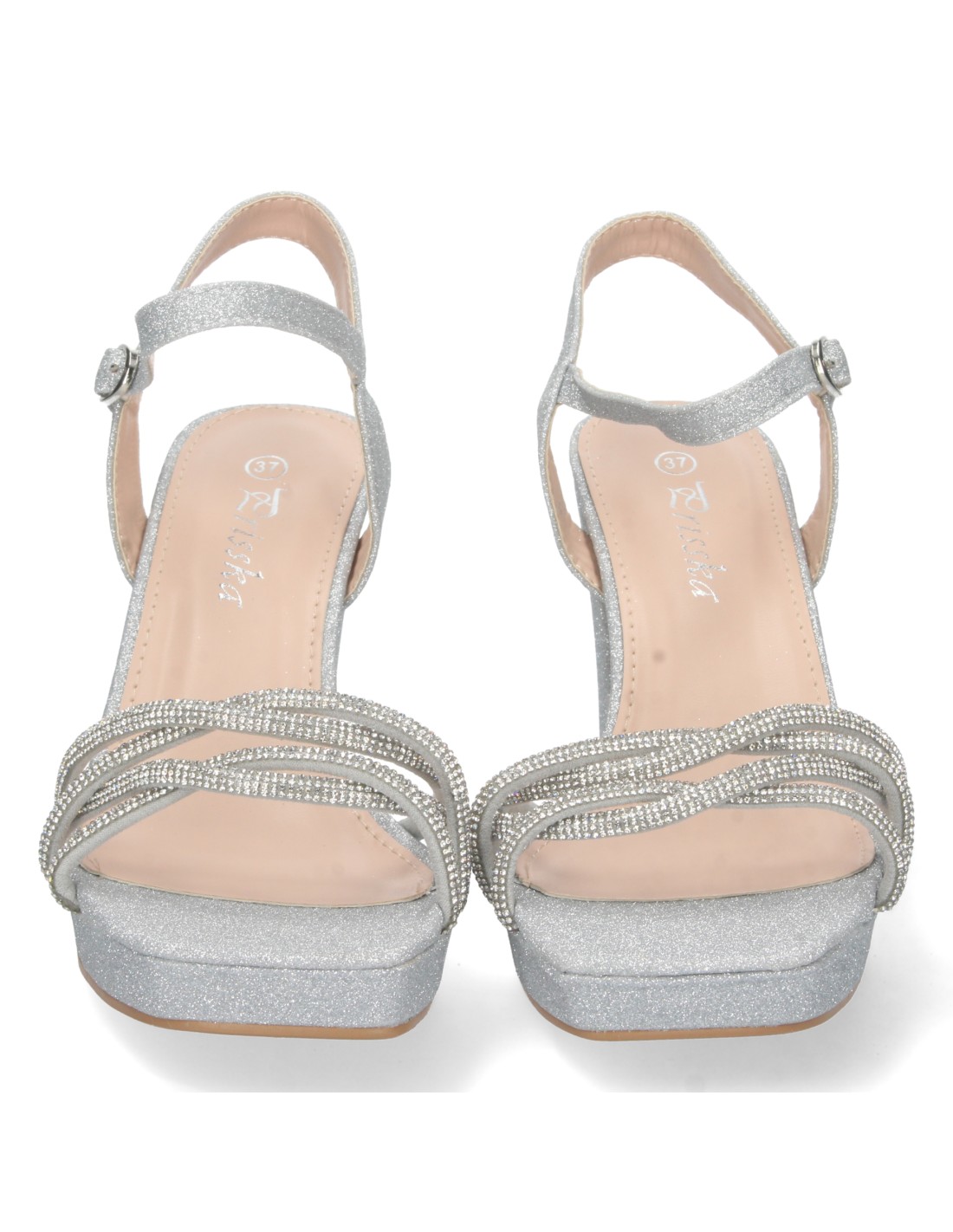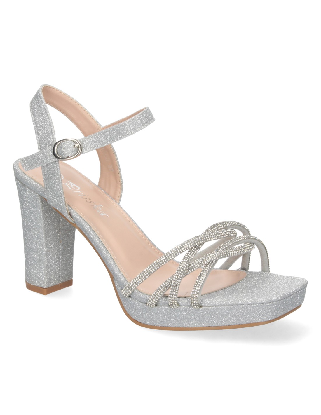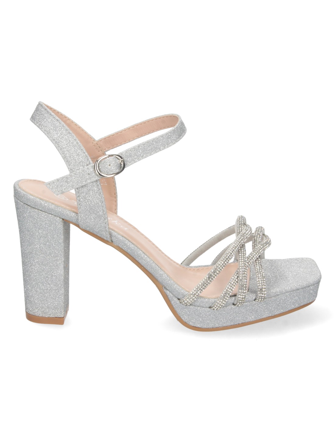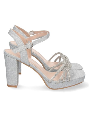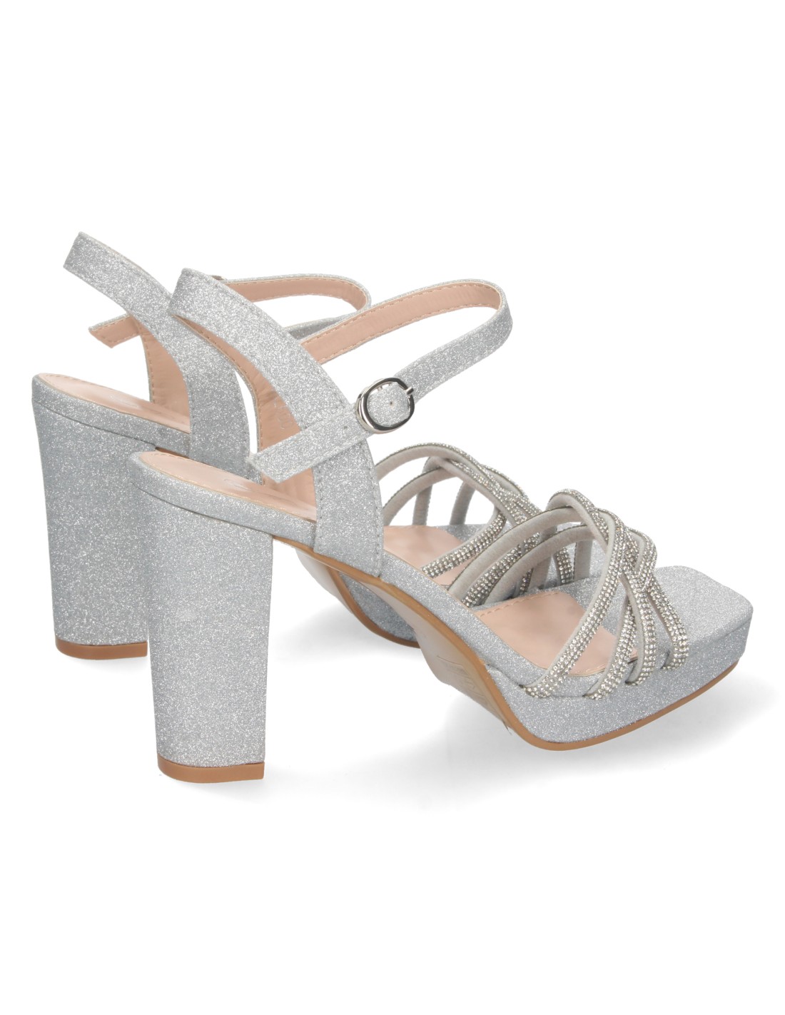 Sandalia de Tacon para Mujer, Comoda, de Material Brillante, con Palas Cruzadas, y Cierre de Hebilla, Otoño Invierno 2022
