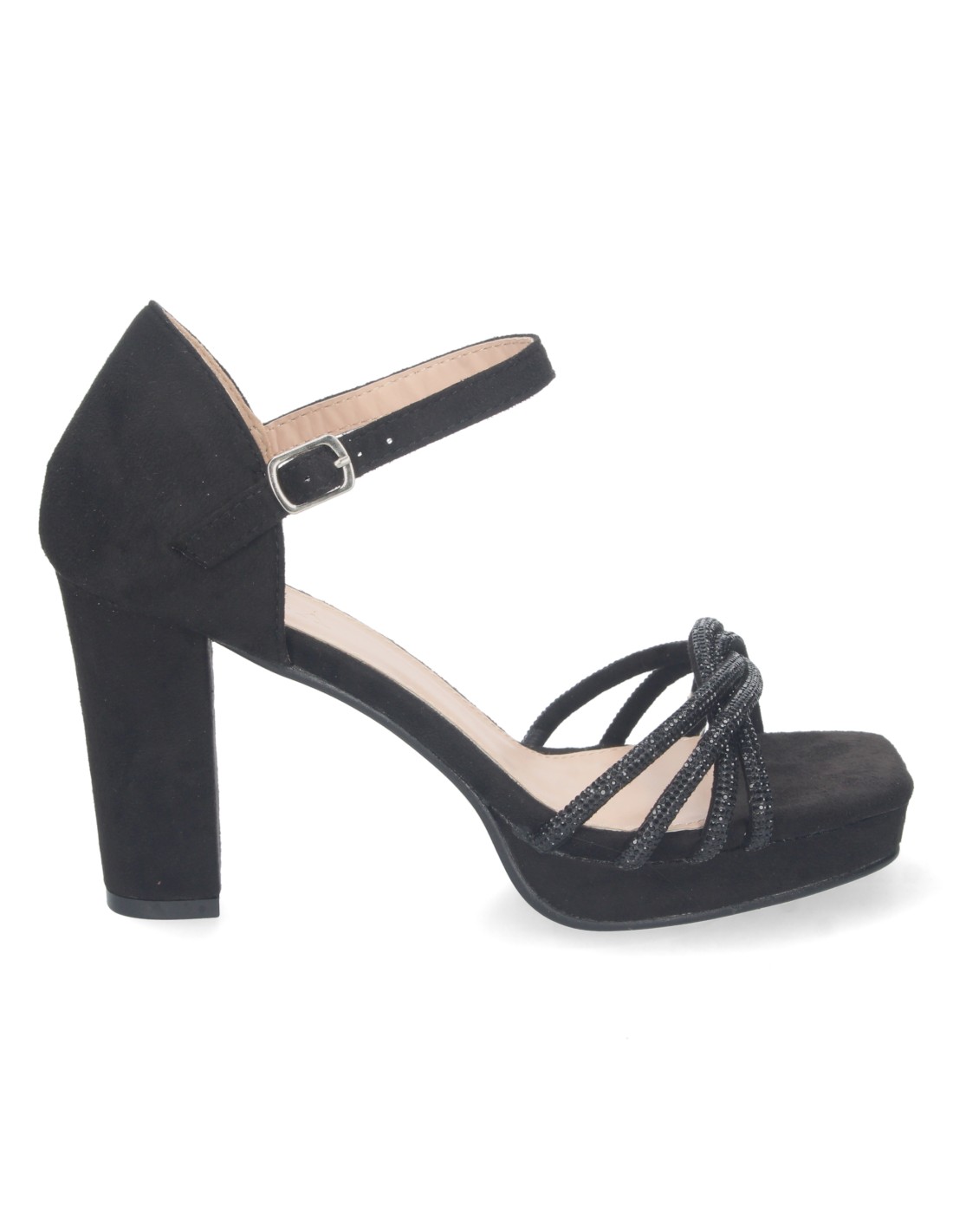 Sandalia de Tacon para Mujer, Comodo, Palas con Strass, y Cierre de Cremallera, Primavera Verano 2023