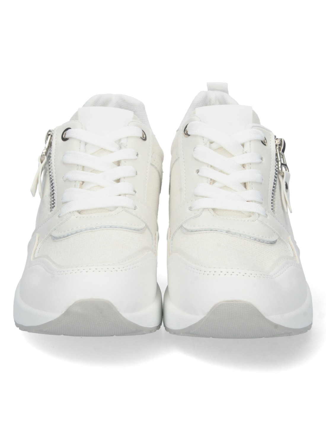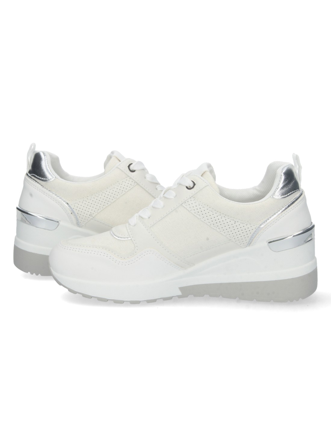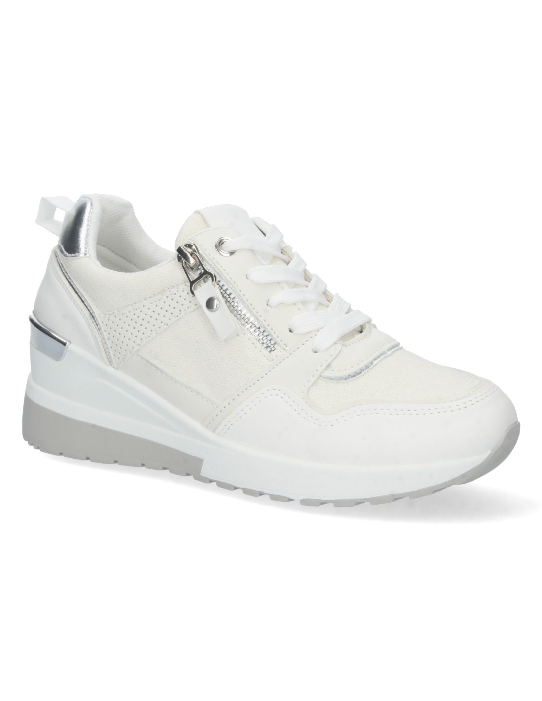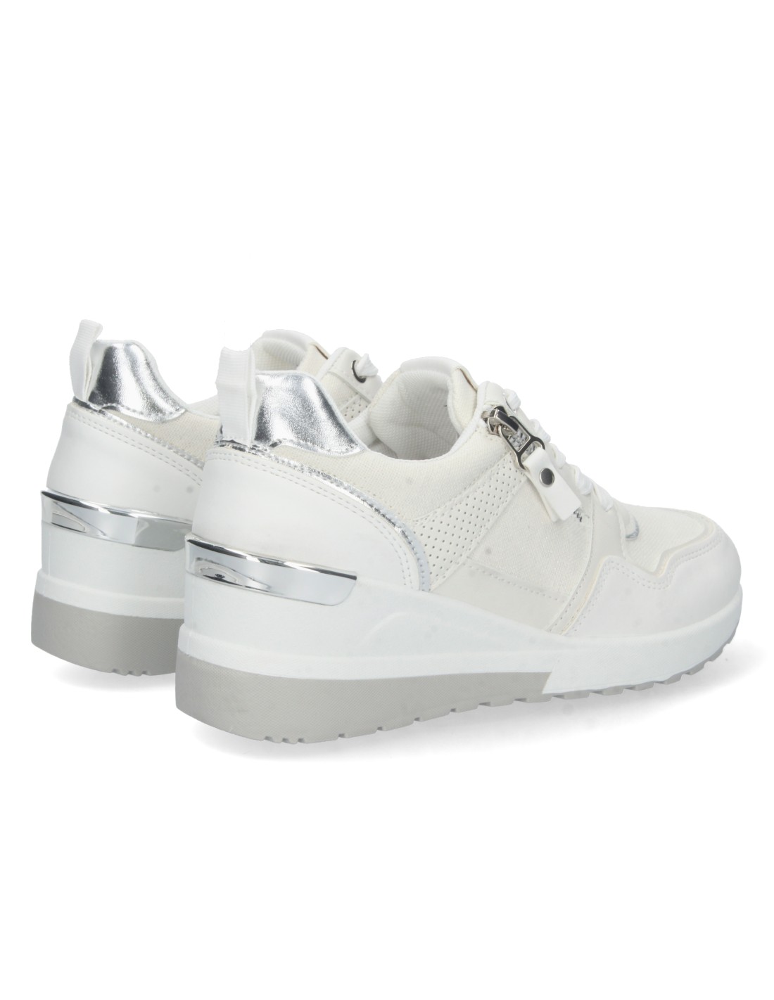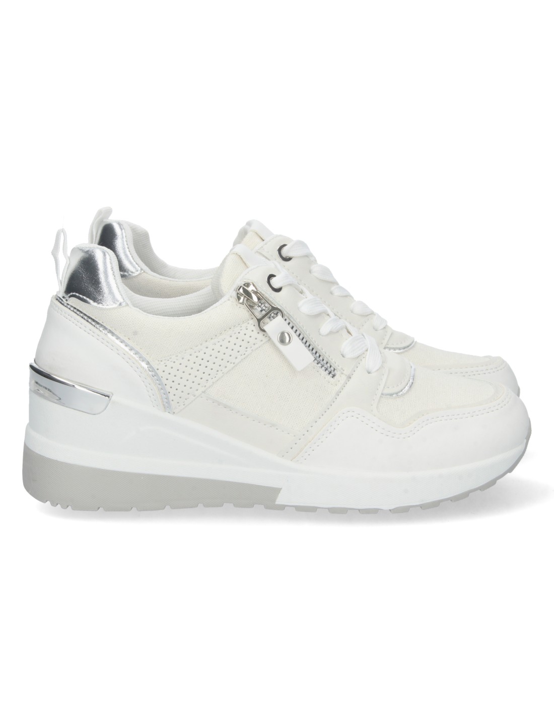 Zapatilla de Cuña para Mujer, Comoda, con Detalle Metalico en el Tacón, Cremallera, y Cierre de Cordones, Primavera Verano 2023