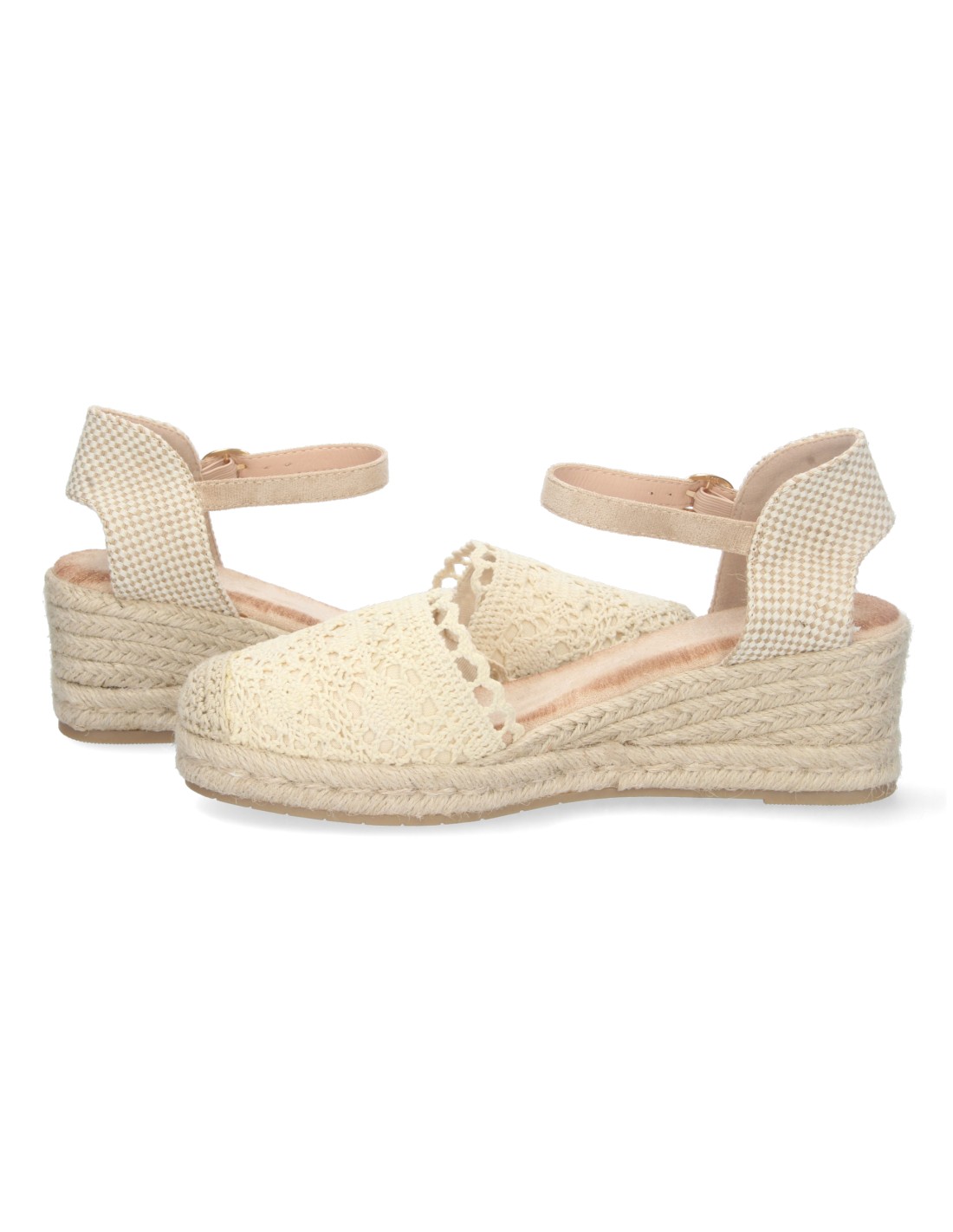 Sandalia de Cuña para Mujer, Forrada de Yute, con Pala de Rafia, y Cierre de Hebilla, Primavera Verano 2023