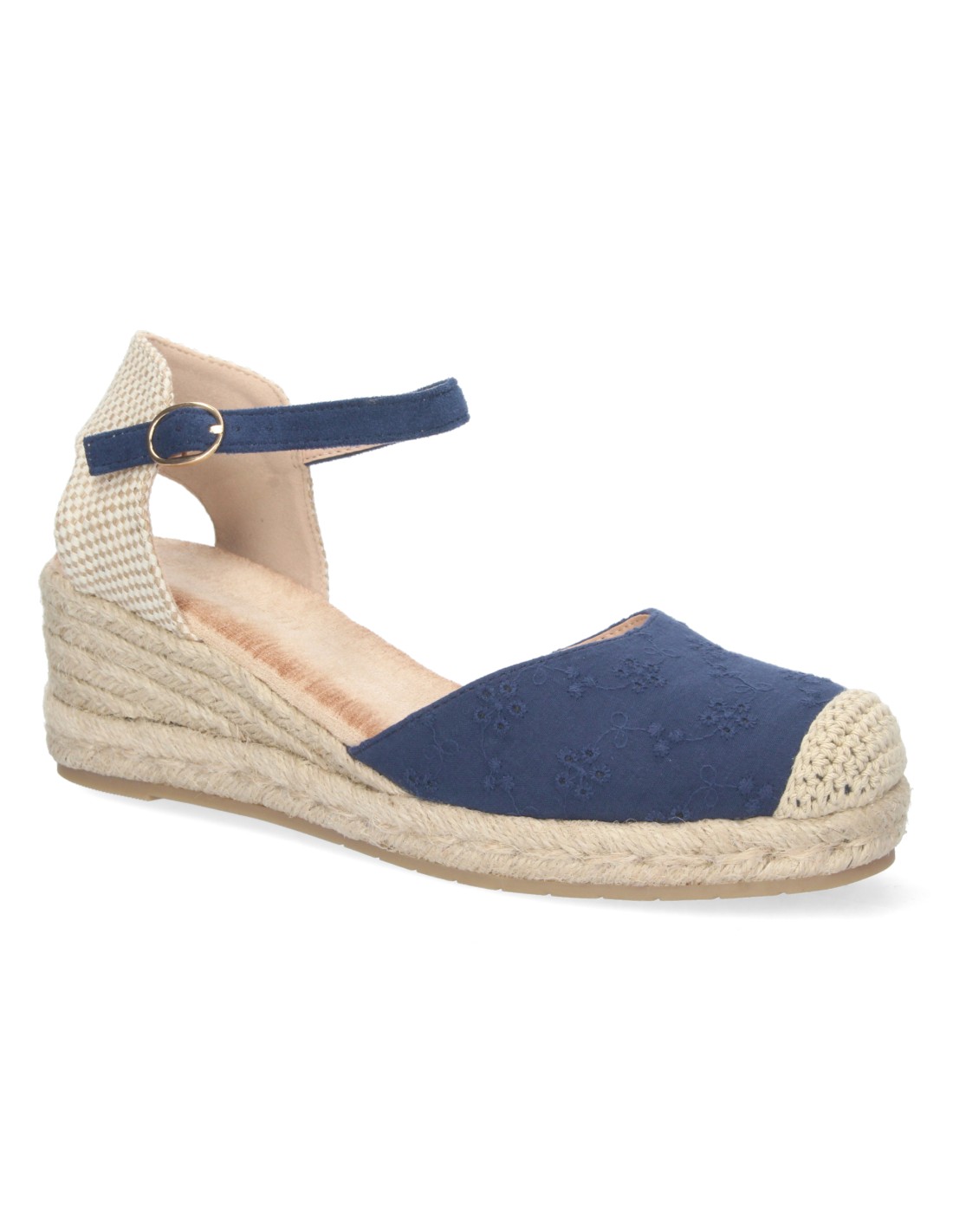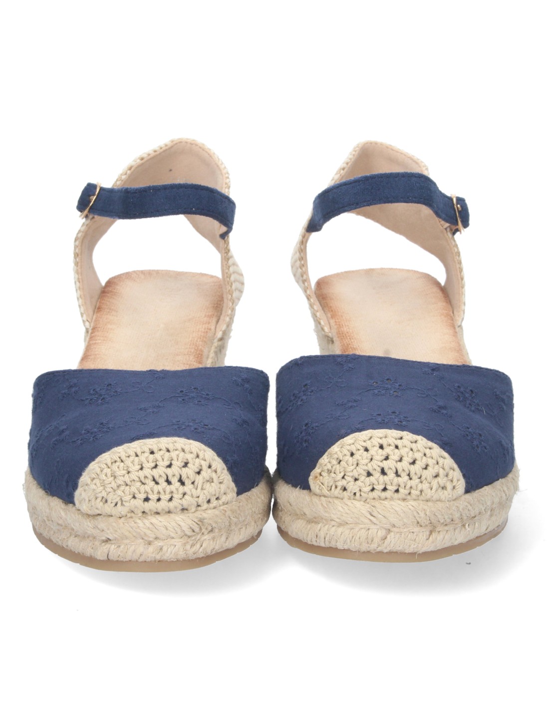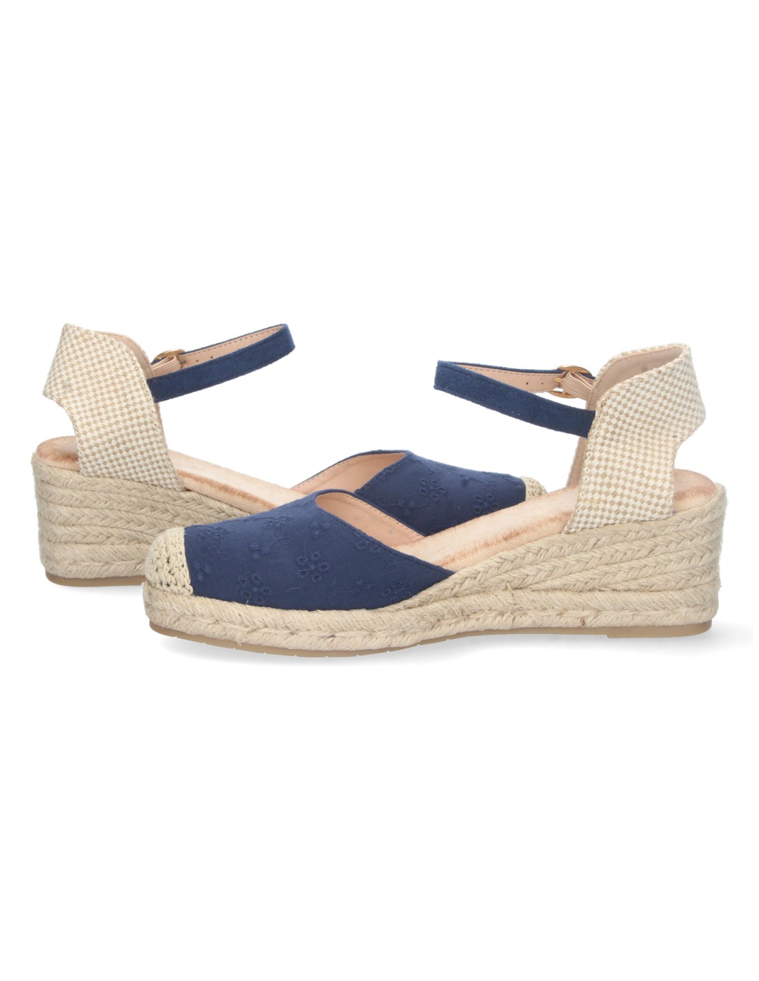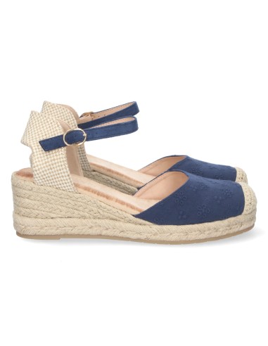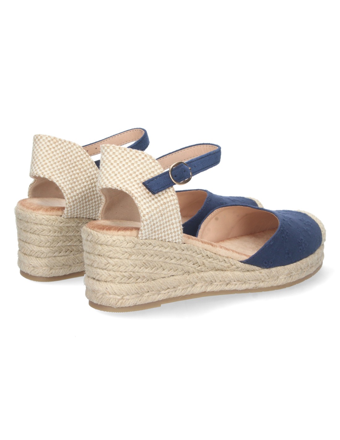 Sandalia de Cuña para Mujer, Forrada de Yute, con Pala Cerrada, Punta de Rafia, y Cierre de Hebilla, Primavera Verano 2023