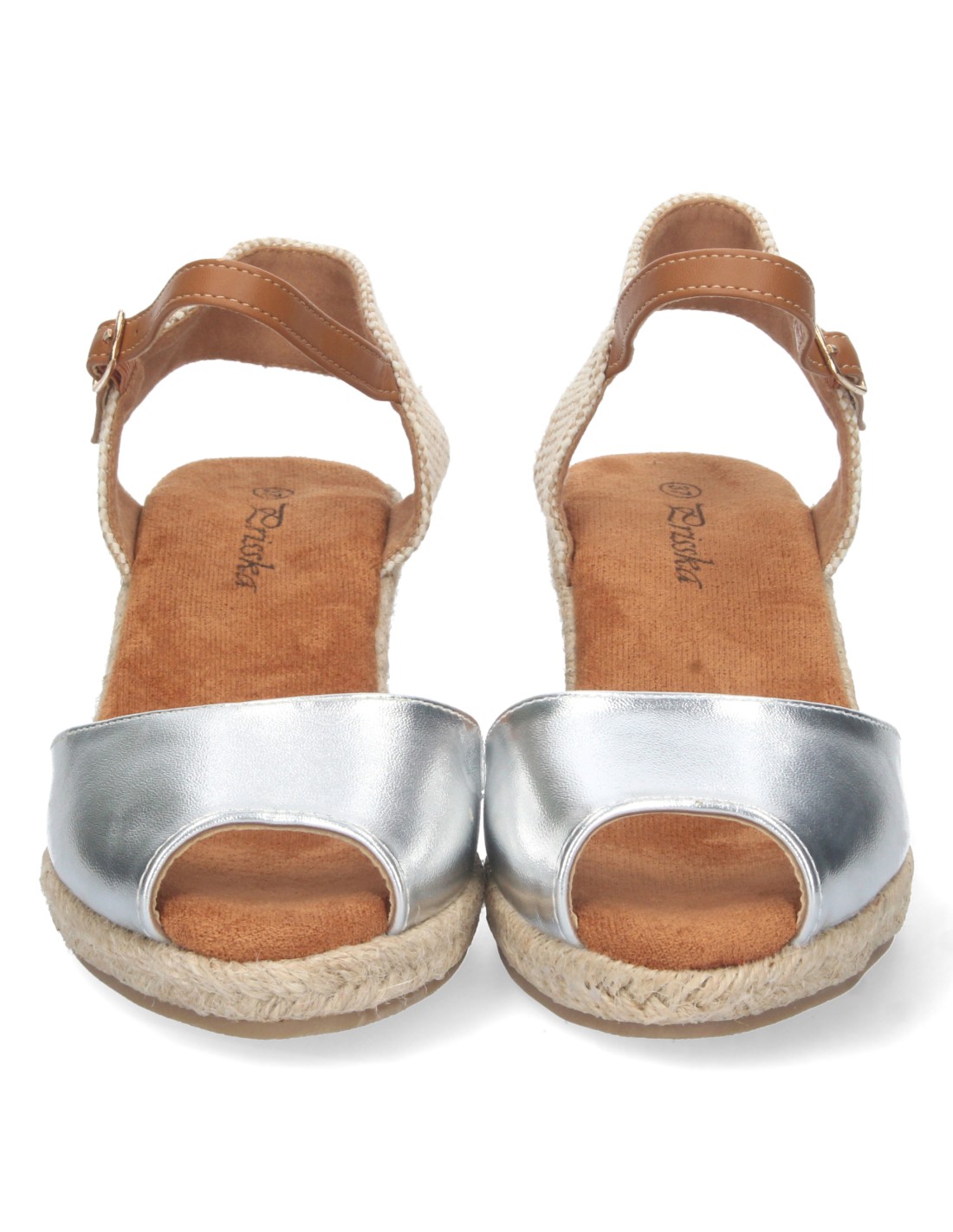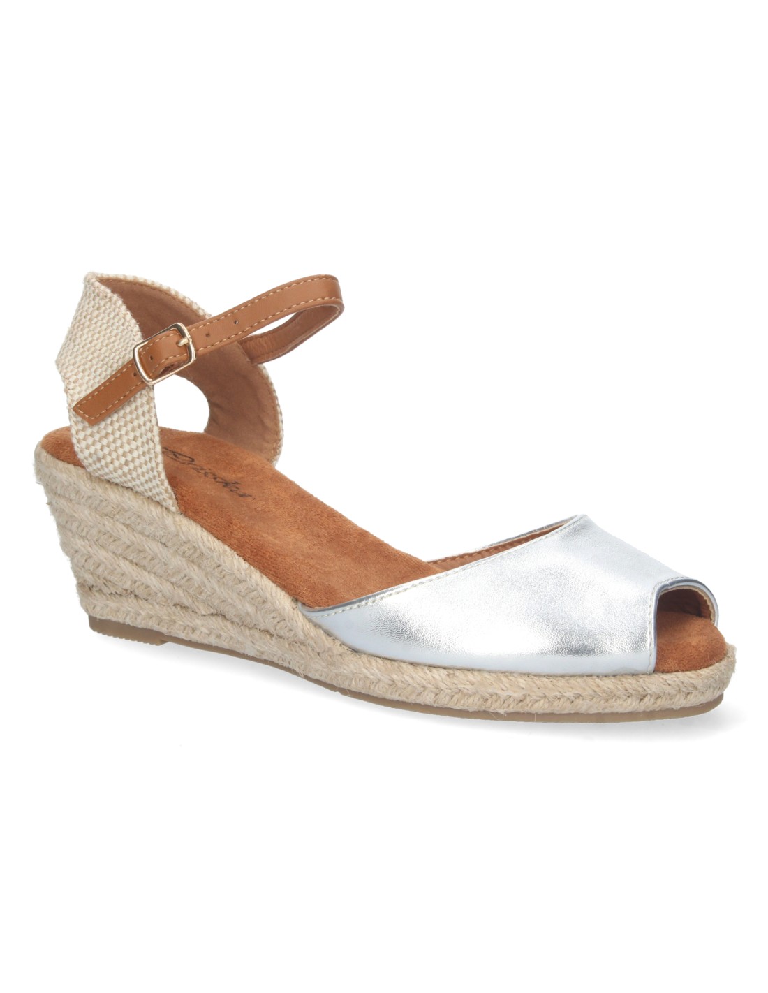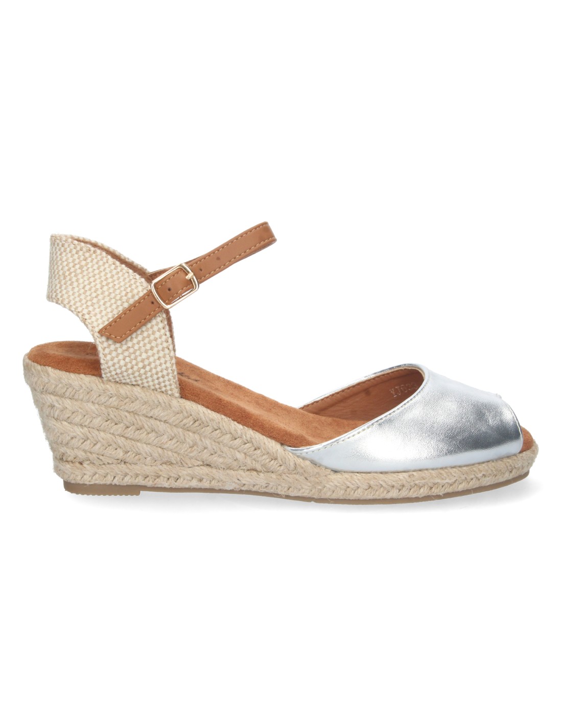 Sandalia de Cuña para Mujer, Estilo Valenciana, Forrada de Yute, Pala Abierta, y Cierre de Hebilla, Primavera Verano 2023