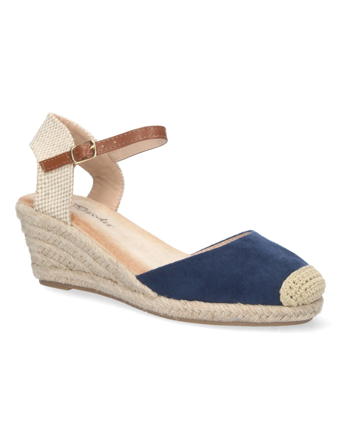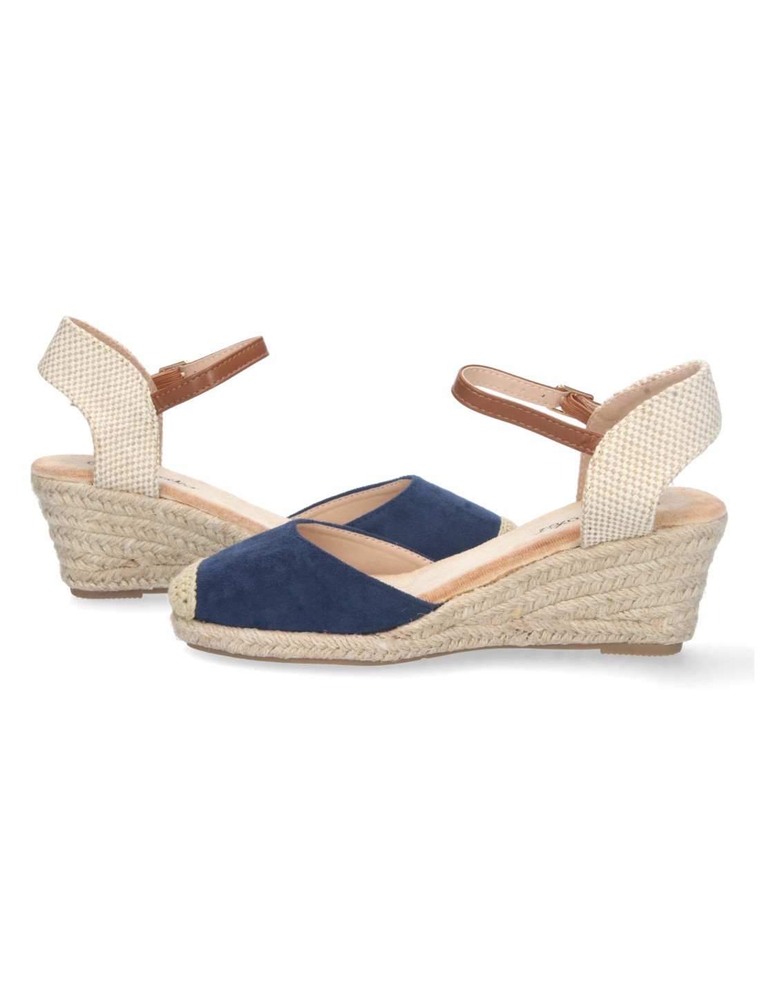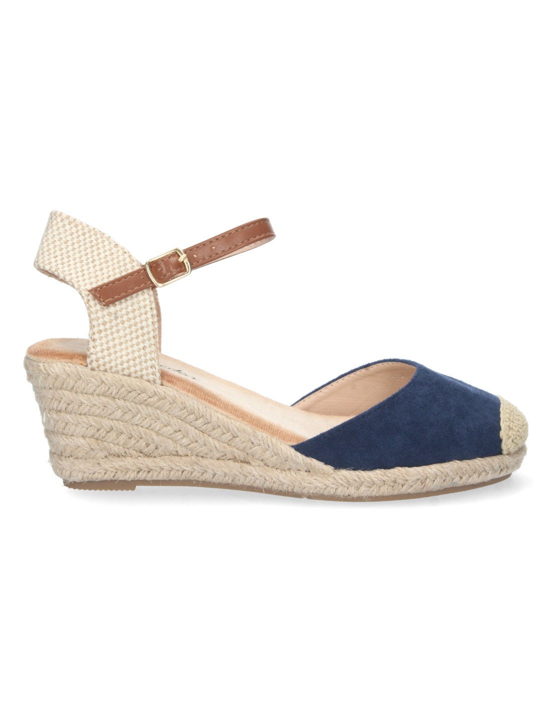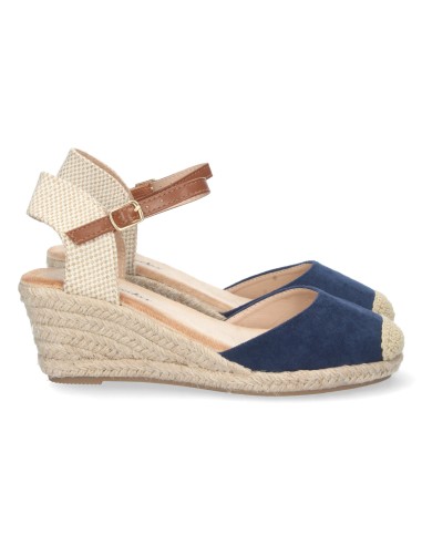 Sandalia de Cuña para Mujer, Estilo Valenciana, Forrada de Yute, Pala Cerrada, y Cierre de Hebilla, Primavera Verano 2023