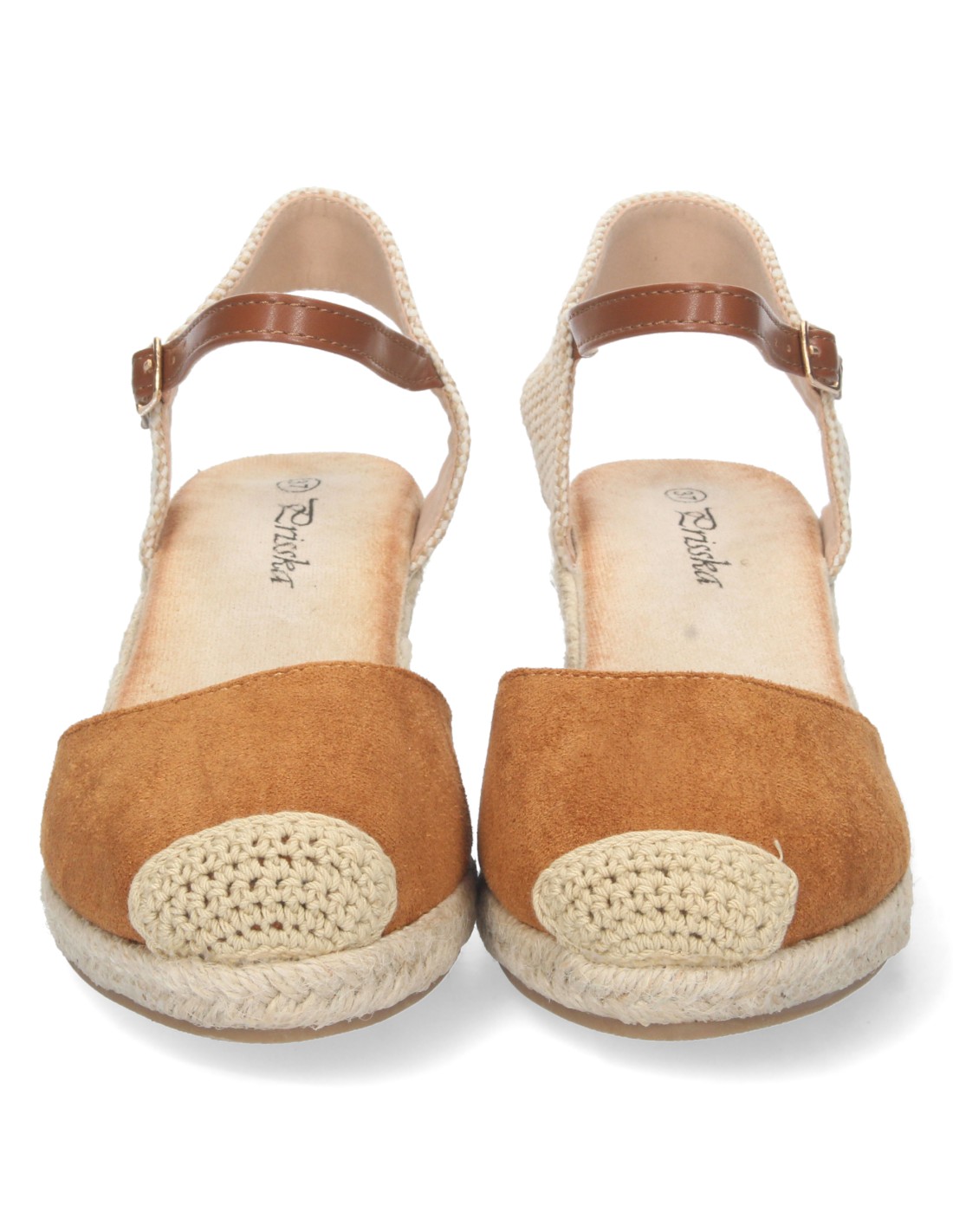 Sandalia de Cuña para Mujer, Estilo Valenciana, Forrada de Yute, Pala Cerrada, y Cierre de Hebilla, Primavera Verano 2023