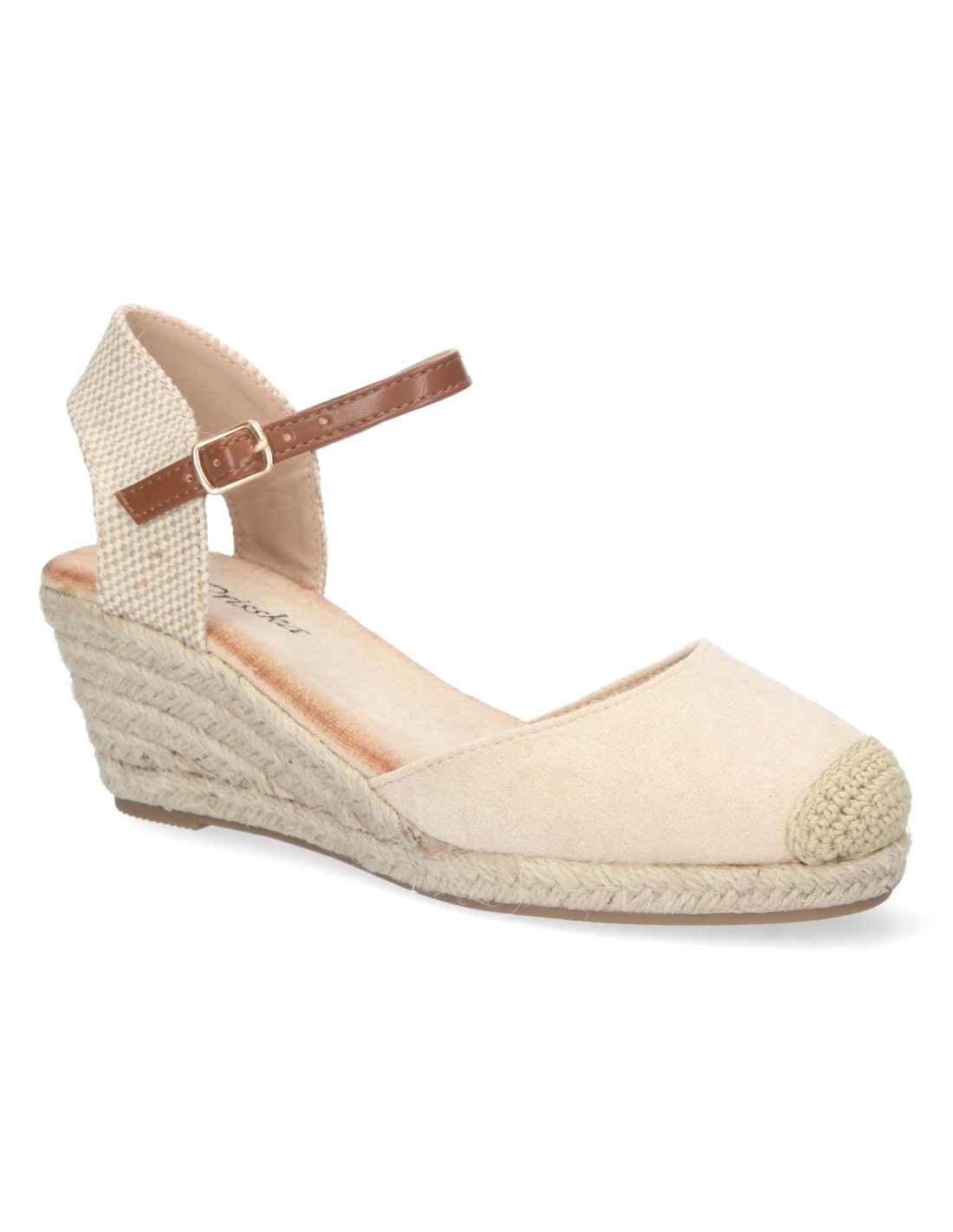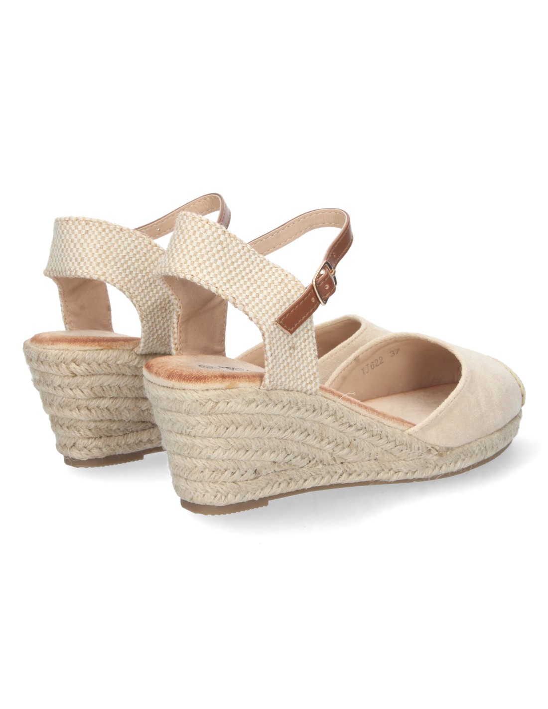 Sandalia de Cuña para Mujer, Estilo Valenciana, Forrada de Yute, Pala Cerrada, y Cierre de Hebilla, Primavera Verano 2023