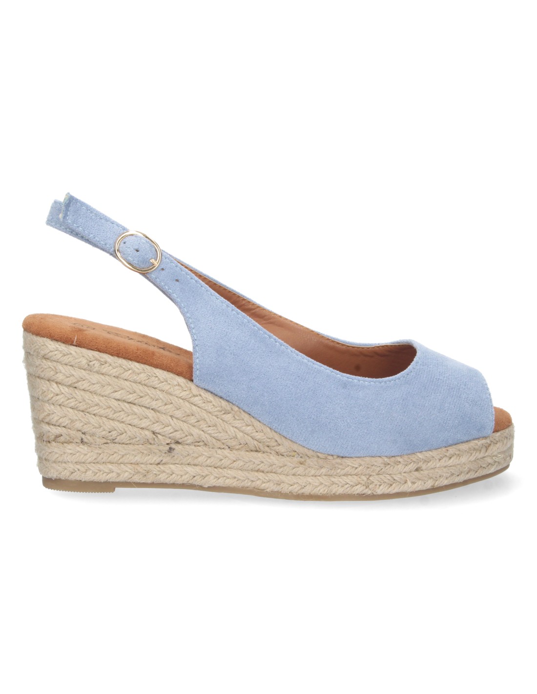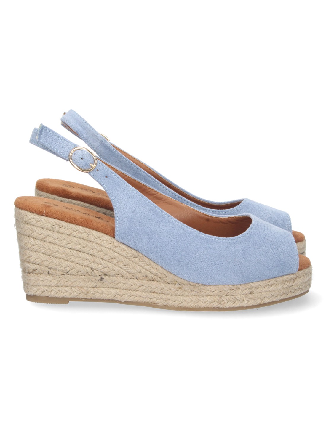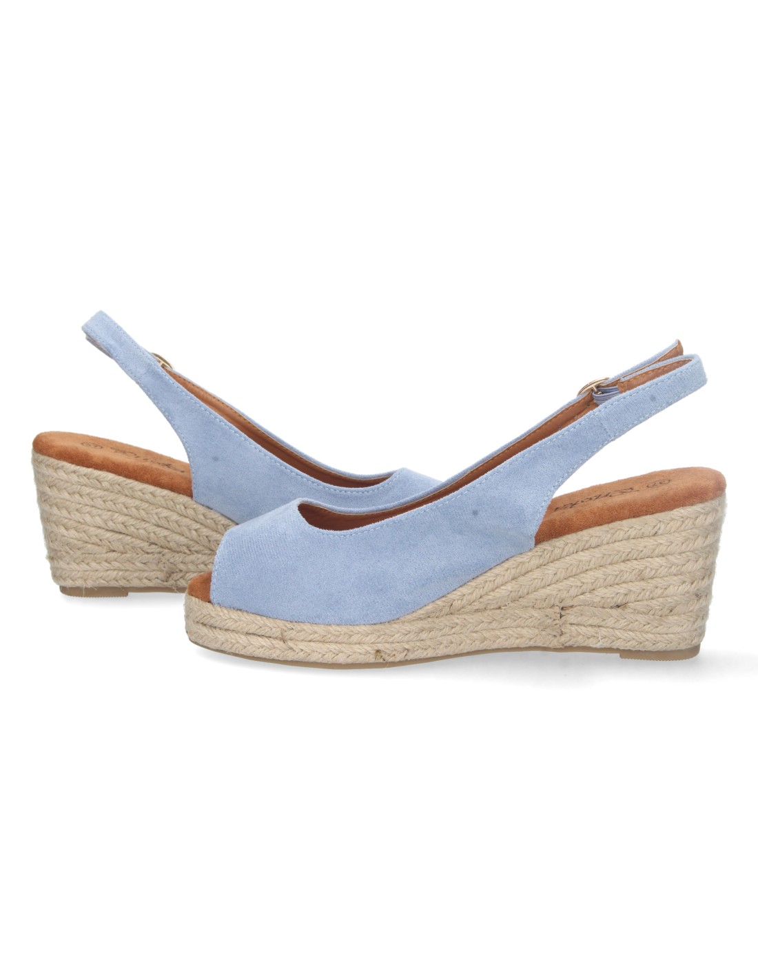 Sandalia de Cuña para Mujer, Forrada de Yute, Punta Abierta, y Cierre de Hebilla en el Tobillo, Primavera Verano 2023