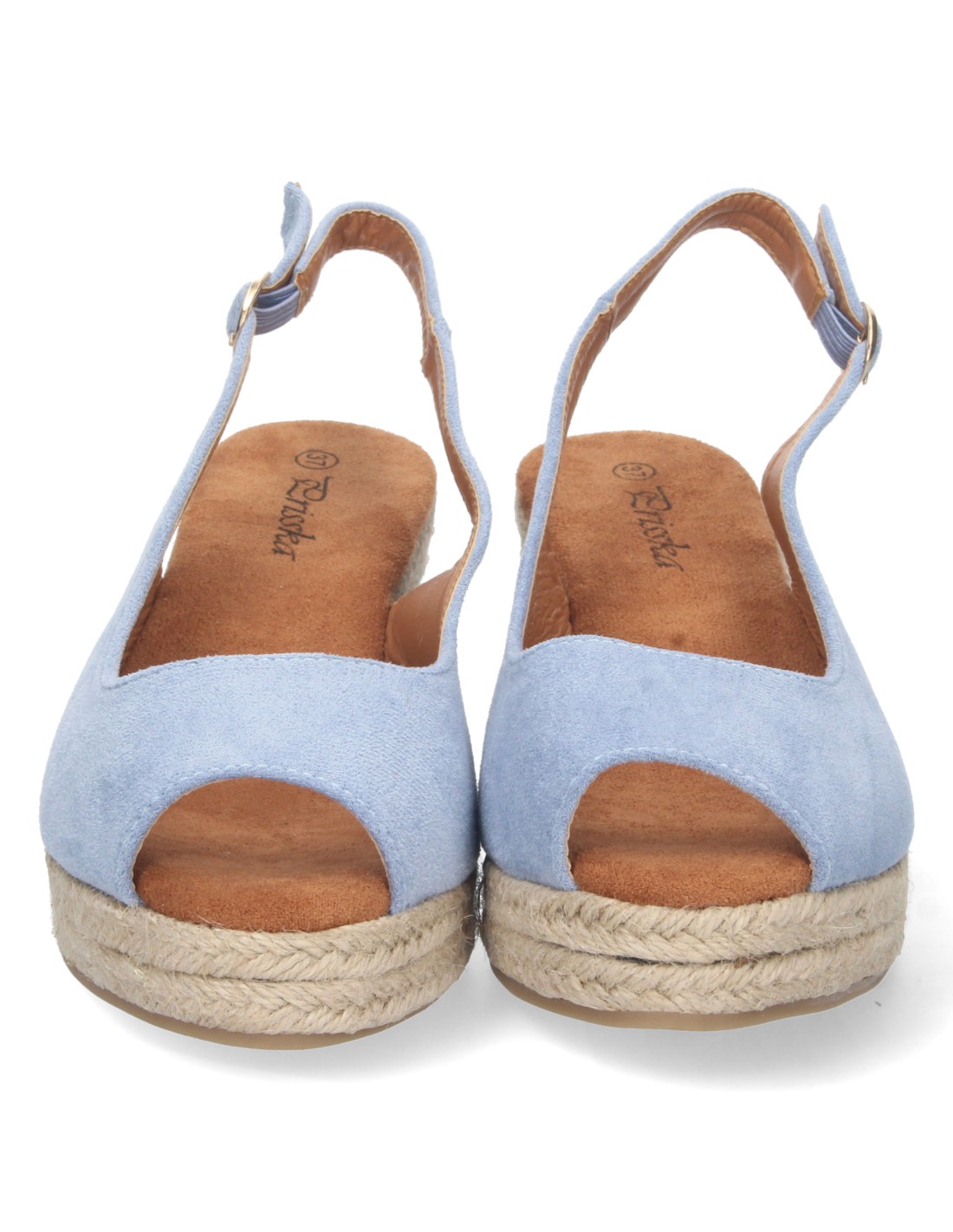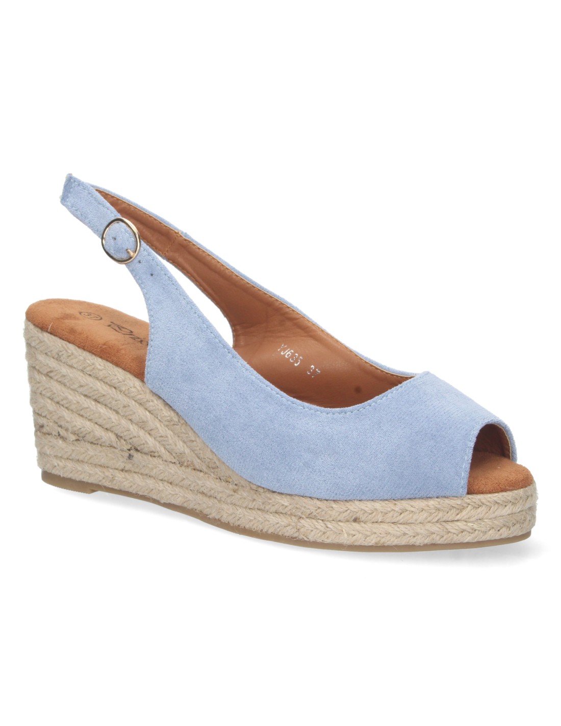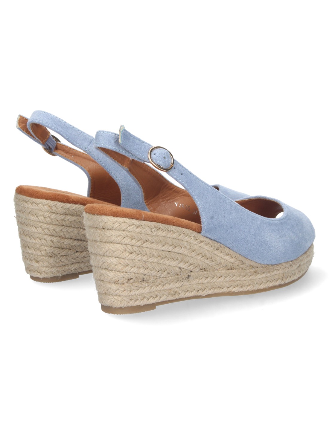 Sandalia de Cuña para Mujer, Forrada de Yute, Punta Abierta, y Cierre de Hebilla en el Tobillo, Primavera Verano 2023