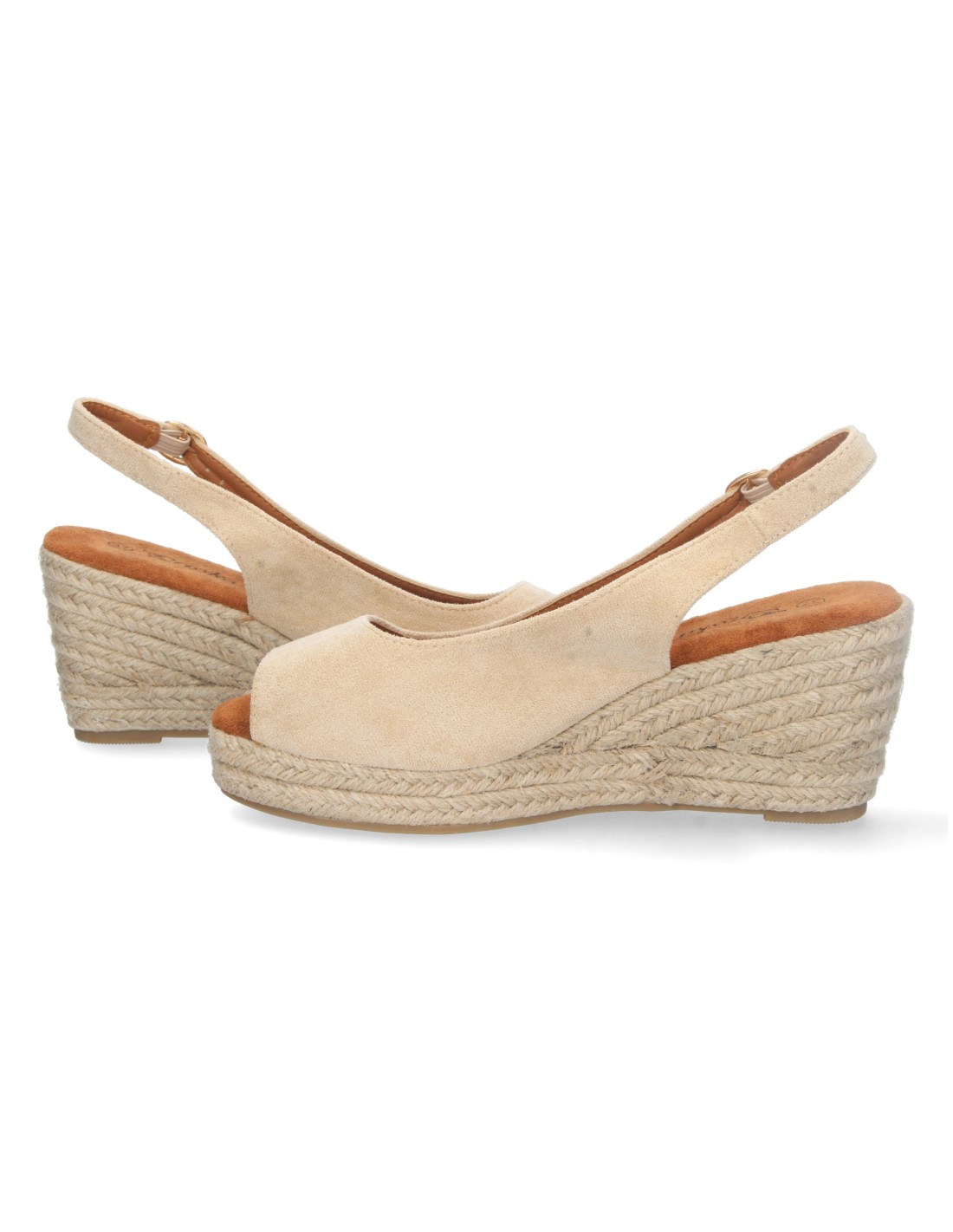 Sandalia de Cuña para Mujer, Forrada de Yute, Punta Abierta, y Cierre de Hebilla en el Tobillo, Primavera Verano 2023