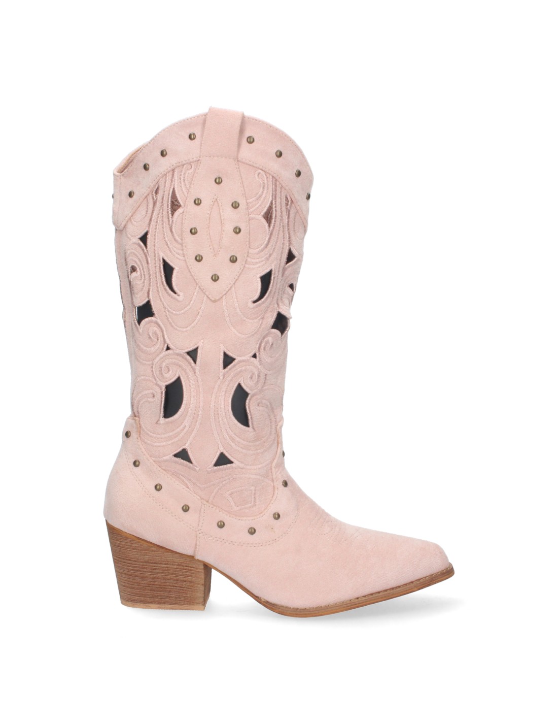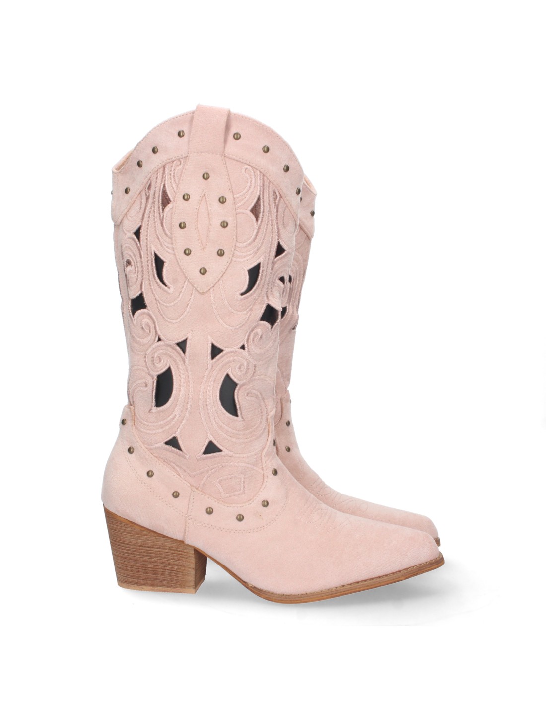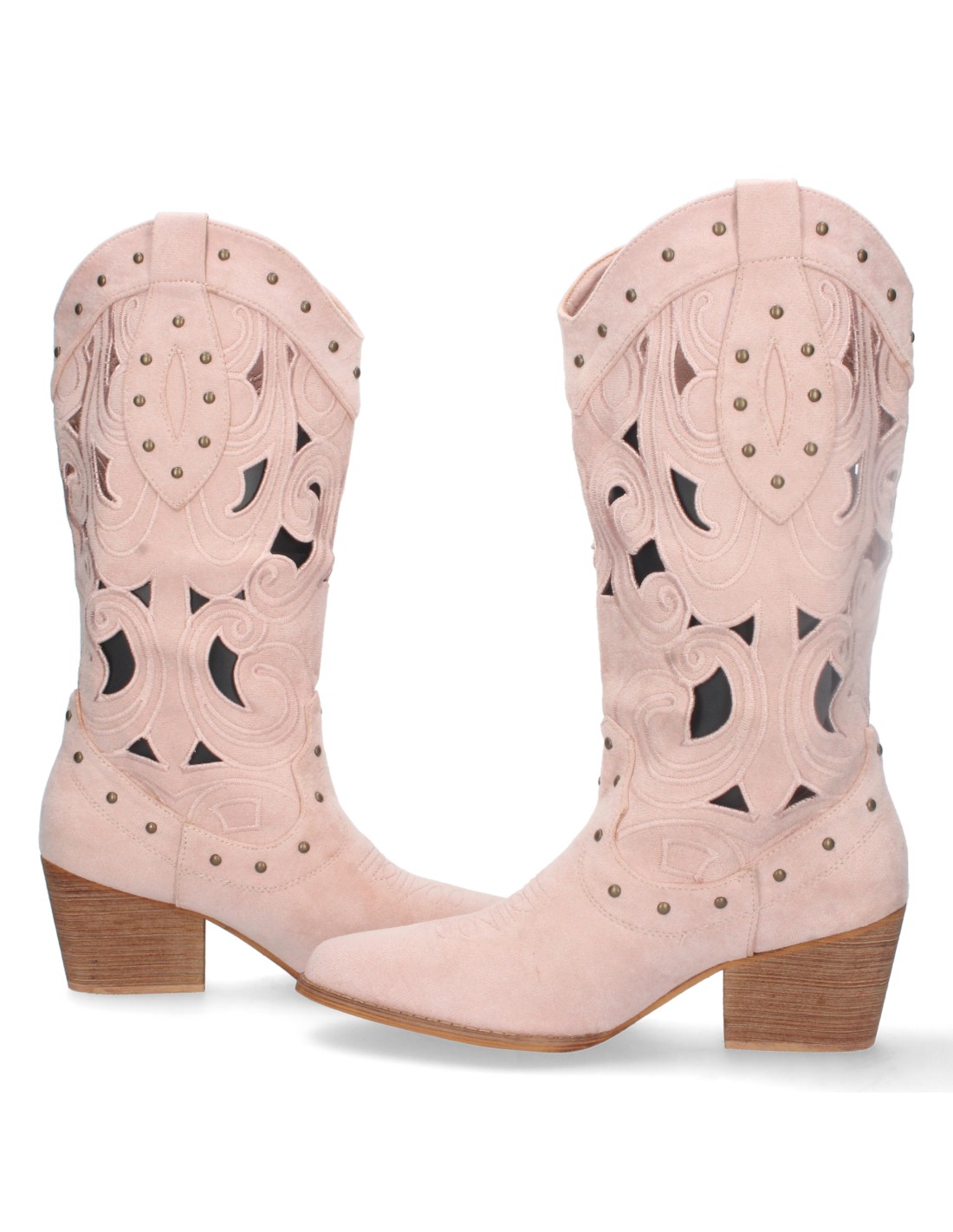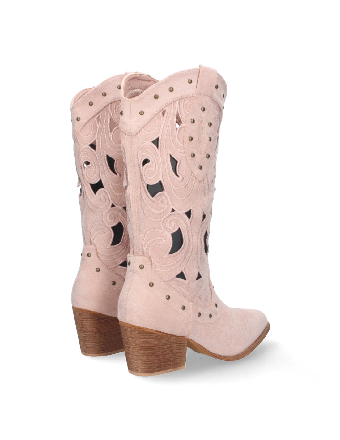 Bota de Tacón para Mujer, Comoda, con Calados y Tachuelas en la Caña, Cierre de Cremallera, Primavera Verano 2023