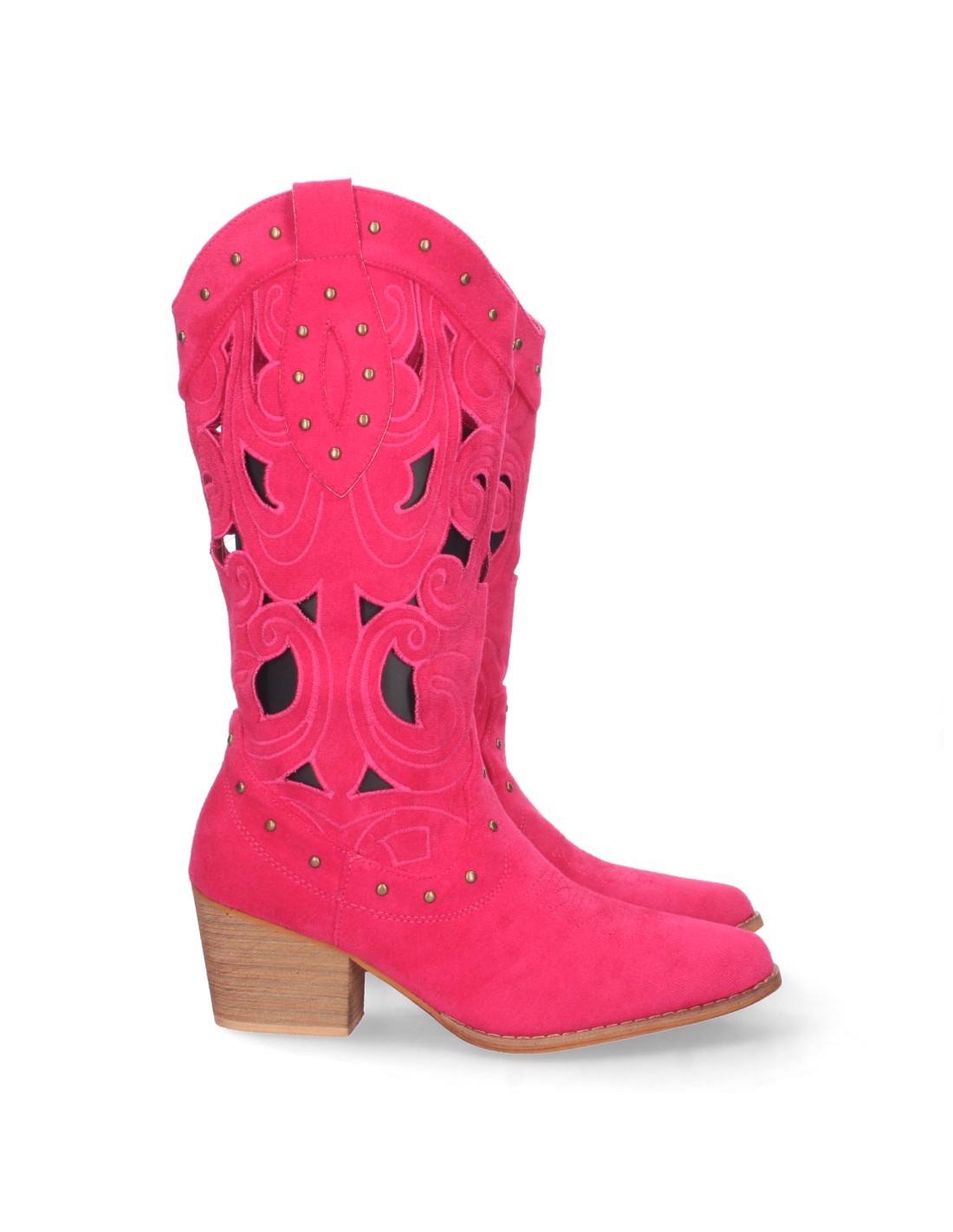 Bota de Tacón para Mujer, Comoda, con Calados y Tachuelas en la Caña, Cierre de Cremallera, Primavera Verano 2023