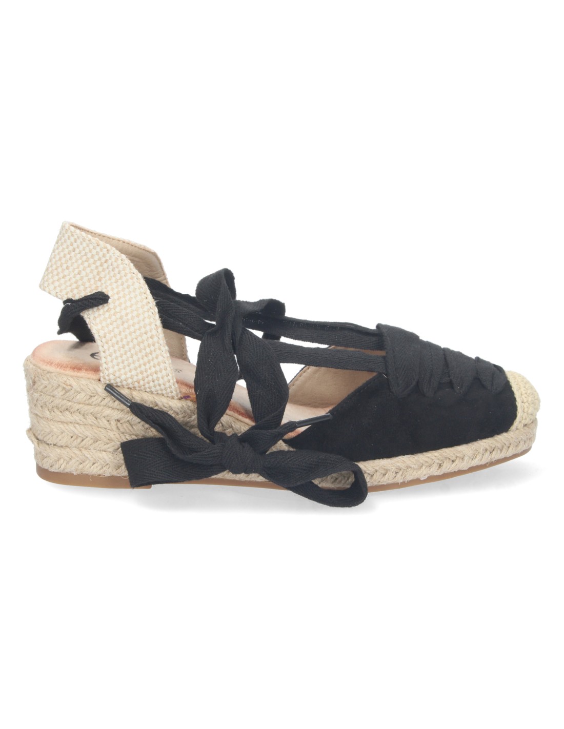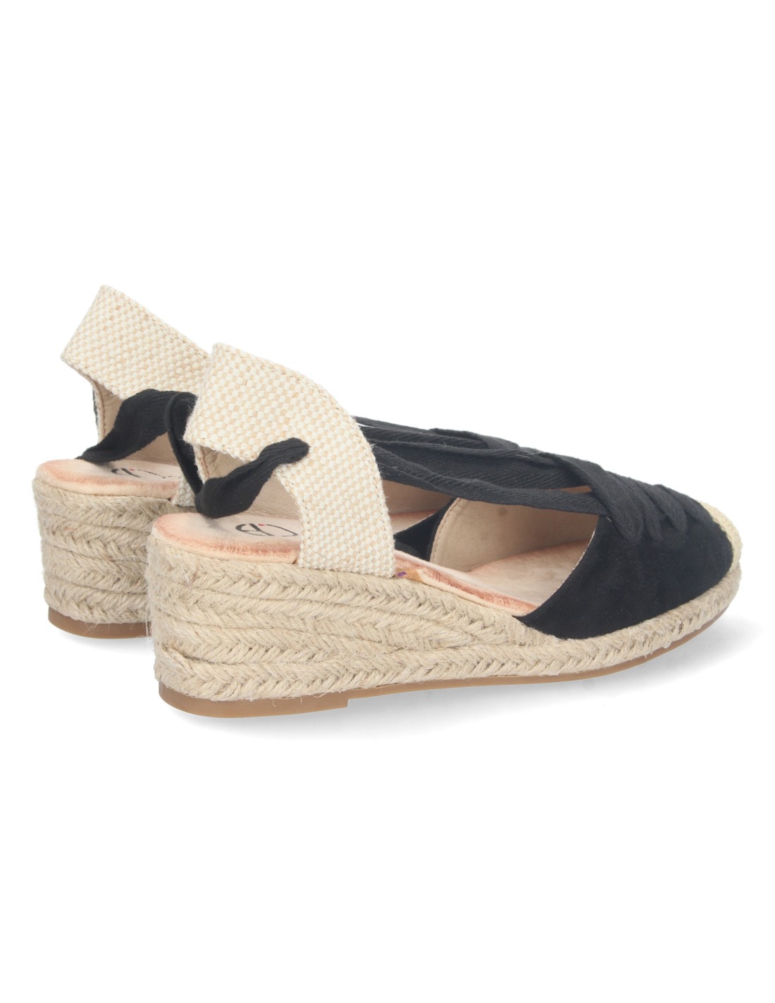 Sandalia de Cuña para Mujer, Forrada de Yute, con Pala Cerrada, Rafia, y Cierre de Cordones, Primavera Verano 2023