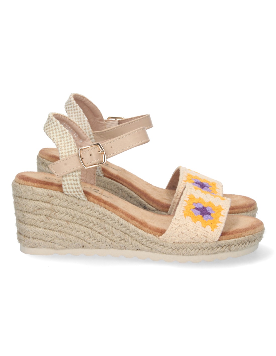 Sandalia de Cuña para Mujer, Comoda, Forrada de Yute, Pala Simple con Bordado, y Cierre de Hebilla, Primavera Verano 2023